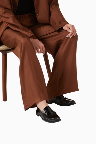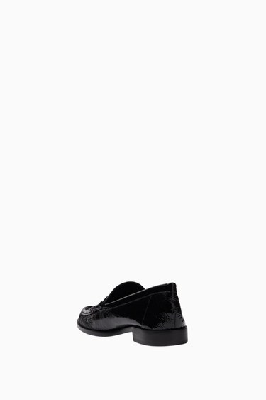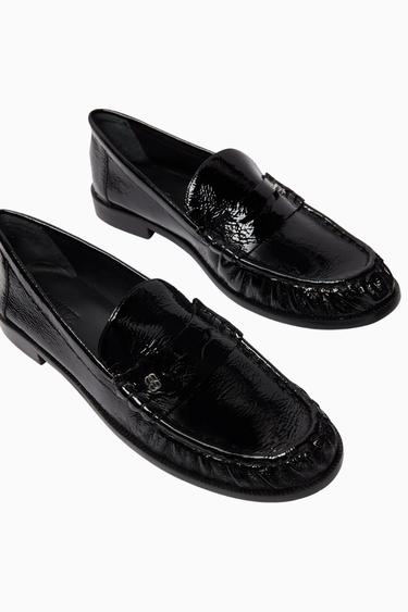 Schutz Fresh Boho loafer, parlak rugan derisi ve gümüş tonlu metal aksesuar detayı ile modern şıklığı klasik el işçiliğiyle buluşturur. Yuvarlak burun formu, belirgin dikiş detayları ve düşük tabanlı yapısıyla hem konforlu hem de sofistike bir duruş sunar. Günlük kombinlerden ofis stiline kadar zamansız bir uyum sağlar.