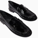 Fresh Boho Siyah Rugan Gümüş Metal Detaylı, Lüks ve Zarif Loafer Ayakkabı