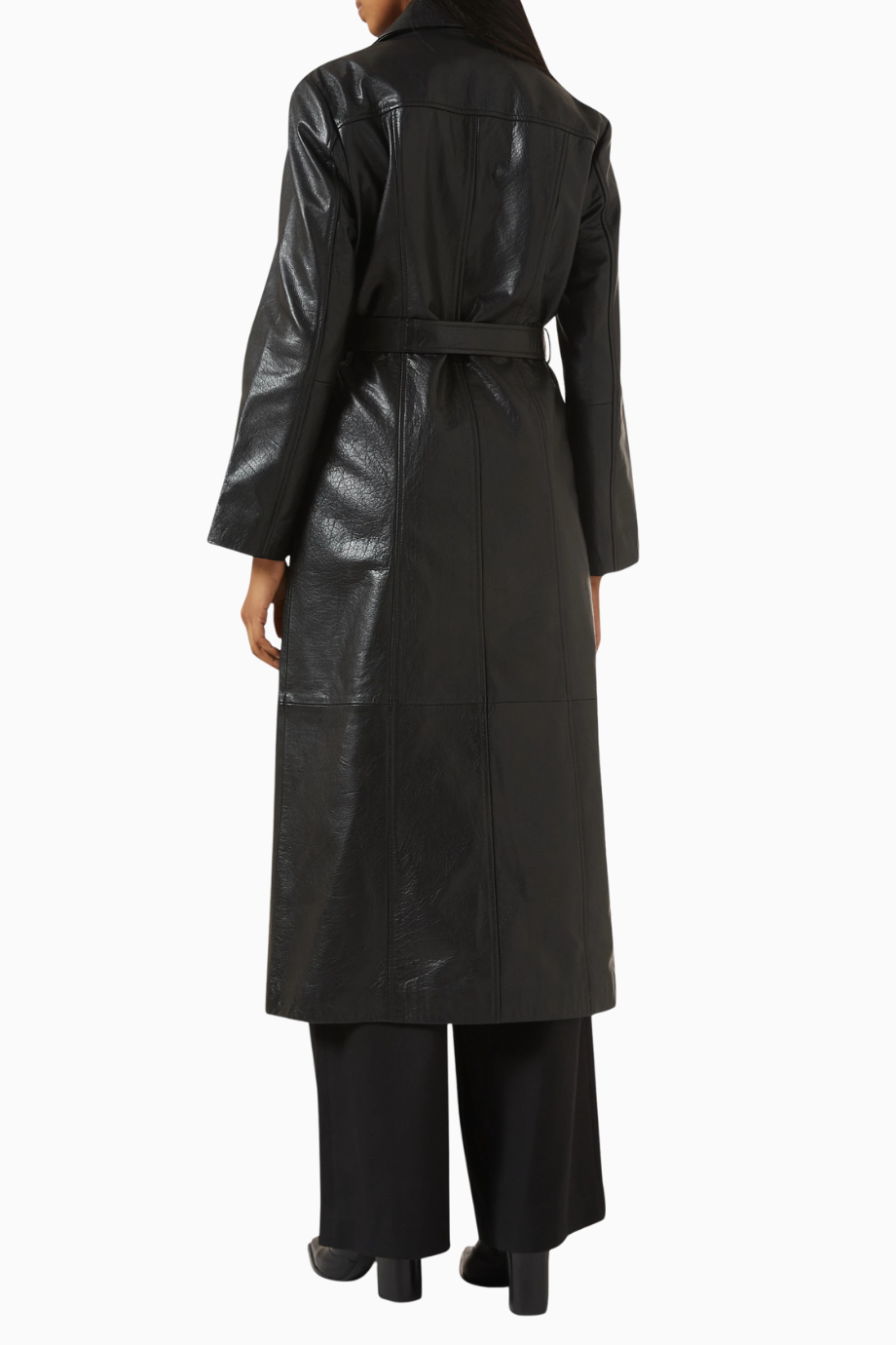 Gileather Siyah Deri Kemerli Trench Coat, Zarif ve Zamansız Stil