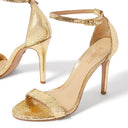 Gisele Metalik Detaylı Sandaletler, Schutz ile lüks dünyasına adım atın. Bu göz alıcı topuklu ayakkabılar, cesur metalik görünümü ve çarpıcı silueti ile gardırobunuzu yükseltmek için tasarlandı. 105mm stiletto topuğu, yüksekliği ve zarafeti bir araya getirerek her türlü etkinlik için dikkat çekici bir seçim yapıyor. Premium malzemelerden üretilen bu sandaletler, hem stil hem de konfor sunarak en iyi görünüm ve hissetmenizi sağlıyor. Parlak metalik görünüm, şık akşam elbiselerinden göz alıcı parti kombinlerine kadar her kıyafetle mükemmel uyum sağlıyor. Hemen koleksiyonunuza ekleyin ve her adımda parlayın.