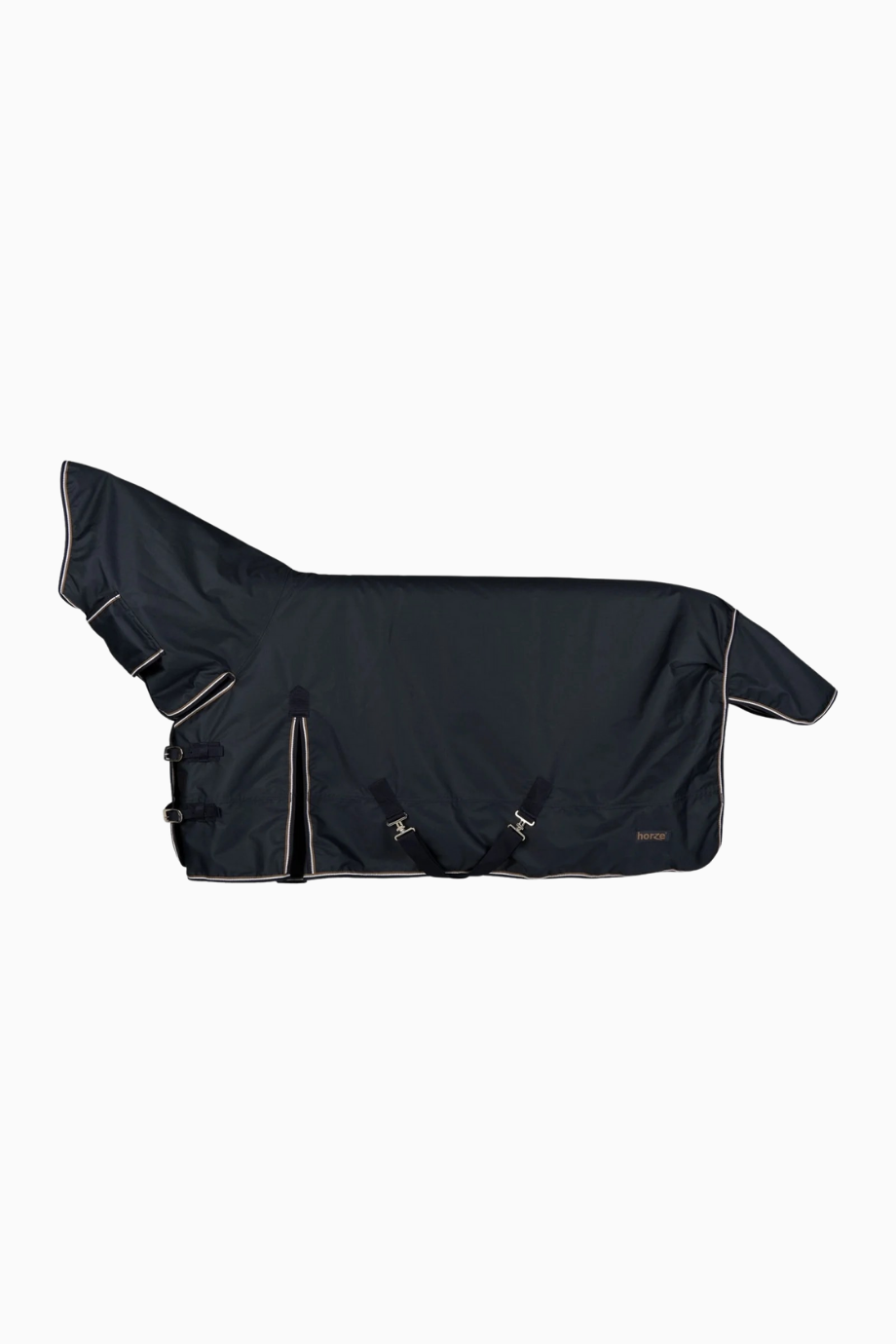Horze Glasgow Pony Boyunlu Yağmurluk 100g, hafif dolgu ile midillinizi boynundan kuyruğuna kadar korur. Su geçirmez, nefes alabilir ve çapraz kayış, bacak kayışı ve kuyruk kapağı ile güvenli ve tam koruma sağlar.