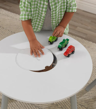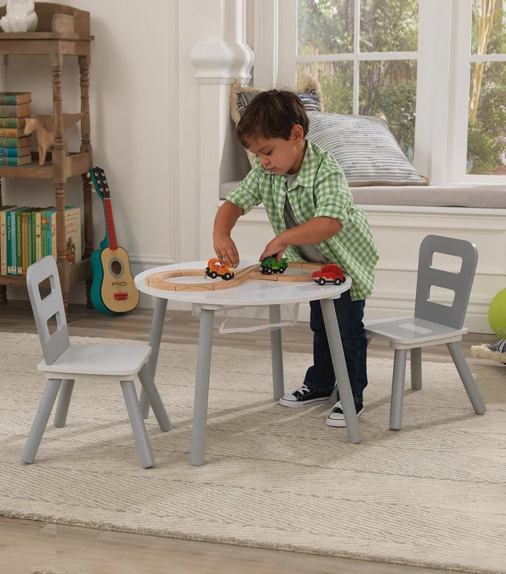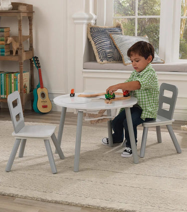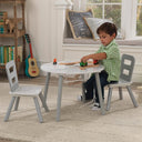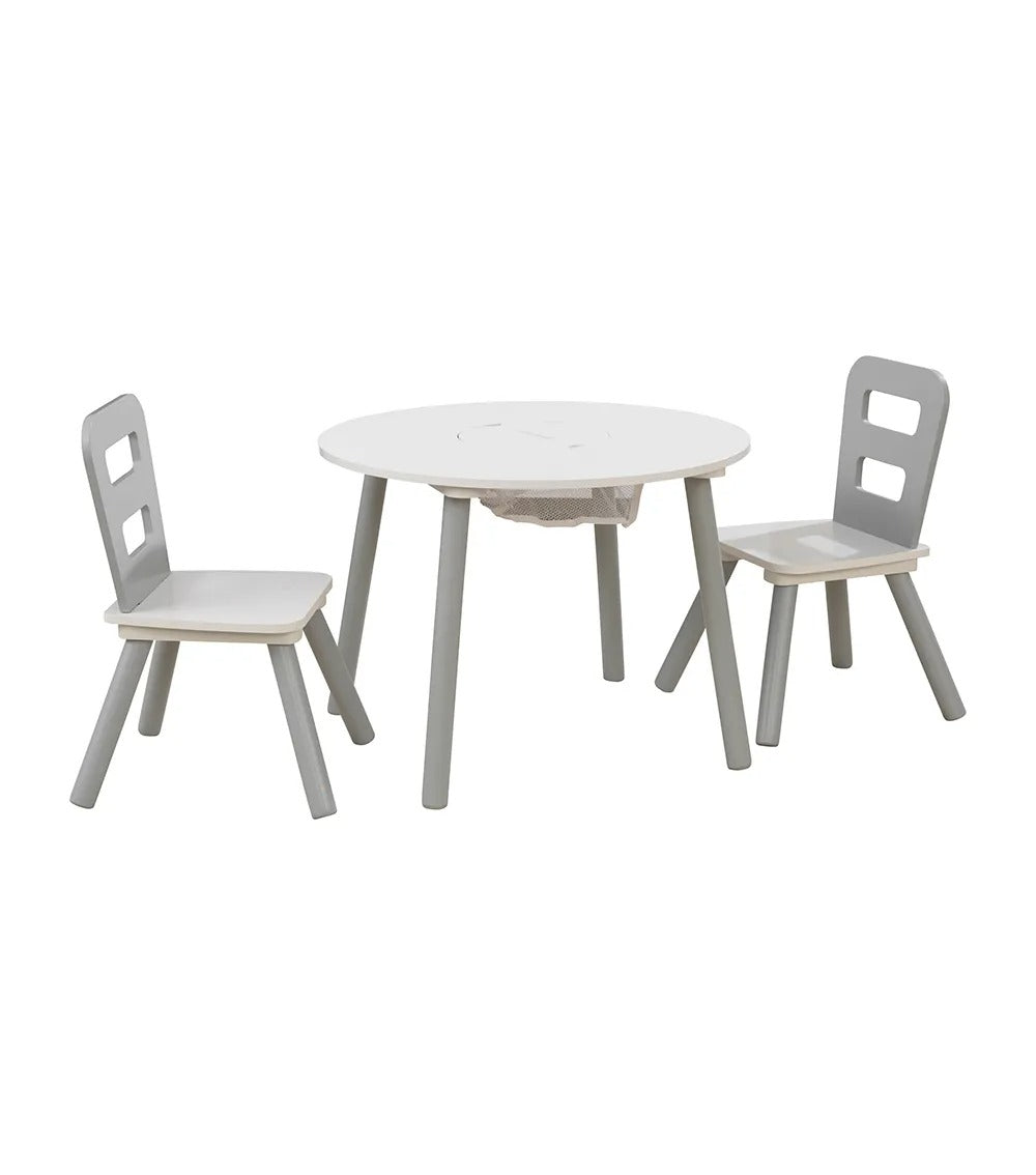 KIDKRAFT gri ve beyaz renkli çocuk masa sandalye takımı, saklama bölmesi ve dayanıklı yapısıyla 3 yaş üstü çocuklar için hem eğlenceli hem de düzenli bir oyun alanı sunar.