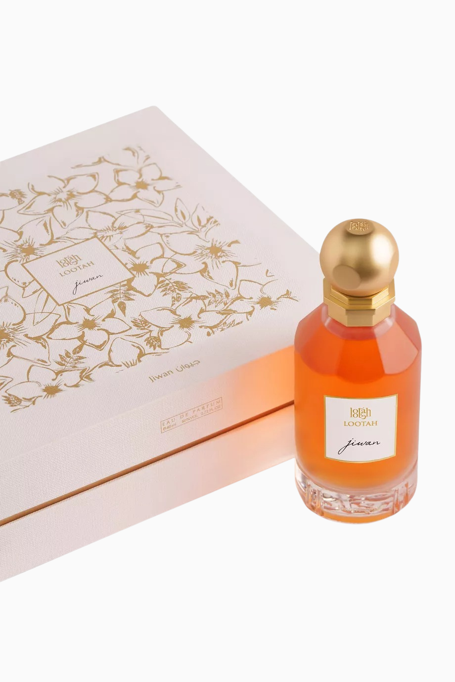 Lootah Perfumes Jiwan Eau de Parfum 80ml, çiçeklerin tazeliği, vanilyanın zarafeti ve miskin pudralı dokunuşuyla sofistike bir kadın parfümü sunar. Kadife gibi yumuşak ve kalıcı drydown ile mekanınıza ve cildinize lüks bir aroma kazandırır.