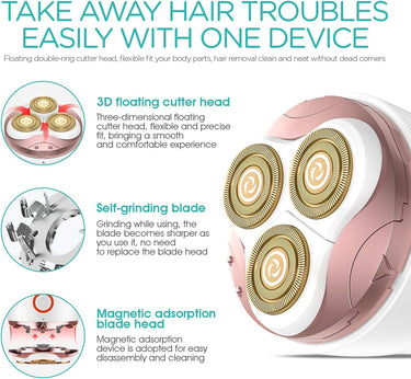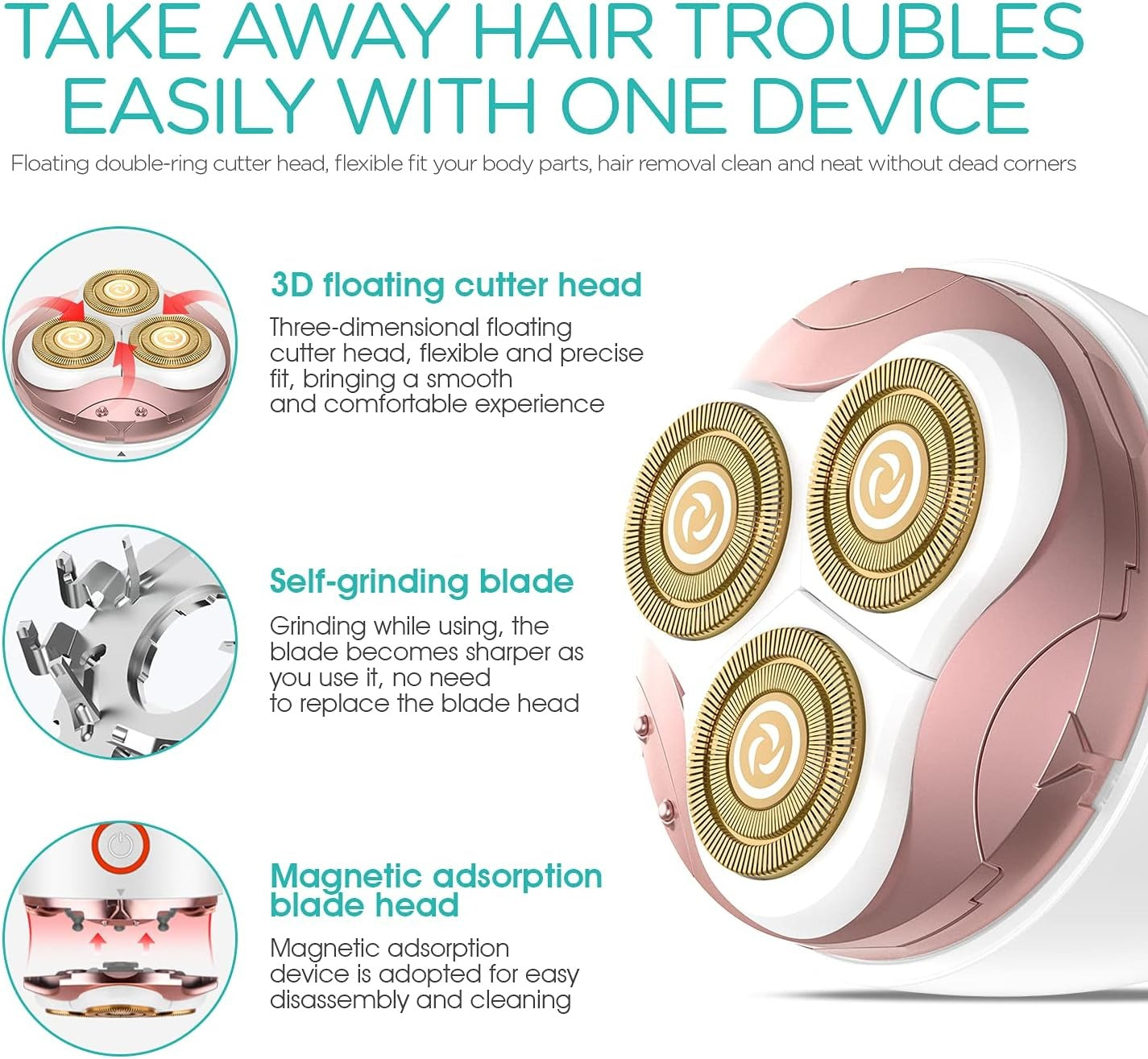 Kablosuz Kadın Tıraş Makinesi, Islak Kuru, Yüz-Bikini-Bacak için Su Geçirmez, Hızlı Şarjlı