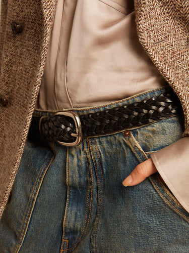 Kadın Siyah Örgü Deri Kemer Vintage Tasarımlı Houston Modeli