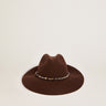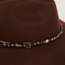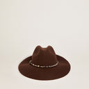 Kahverengi Çivili Deri Kayışlı Fedora Şapka, Yün Tasarım, Altın Yıldız Detaylı