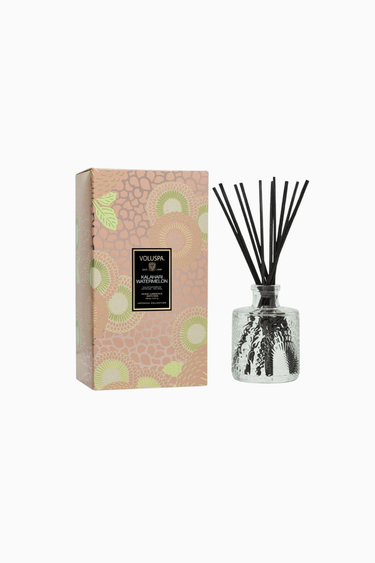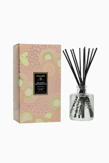 VOLUSPA Kalahari Watermelon oda kokusu, meyvemsi ve ferahlatıcı notalarıyla yaşam alanlarını canlandırır. Şık cam tasarımıyla dekoratif etki de sunar. Tüm yaş grupları için uygundur.