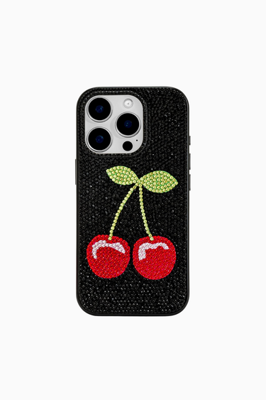 Işıltılı siyah yapay kristal arka plan üzerine kırmızı ve yeşil kristallerle tasarlanmış kiraz motifiyle bu telefon kılıfı, dikkat çekici bir tarz sunar. Şıklığı ve işlevselliği bir araya getiren tasarımı sayesinde hem stilinizi yansıtır hem de cihazınızı korur. El yapımı olması nedeniyle her ürün özgün bir karaktere sahiptir.