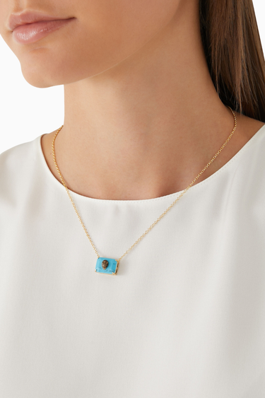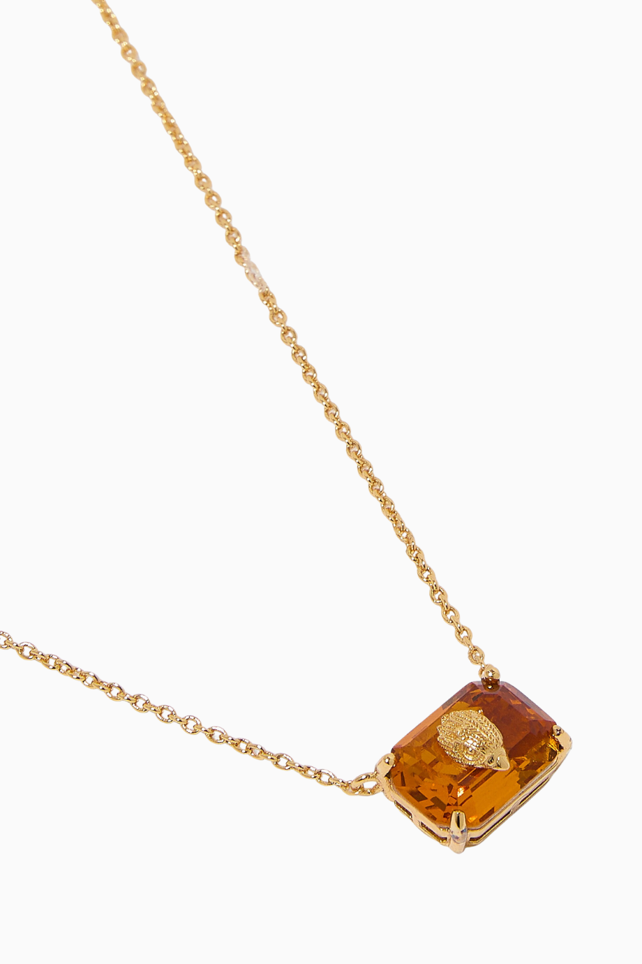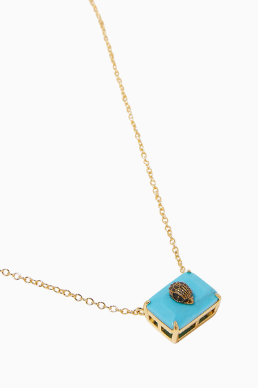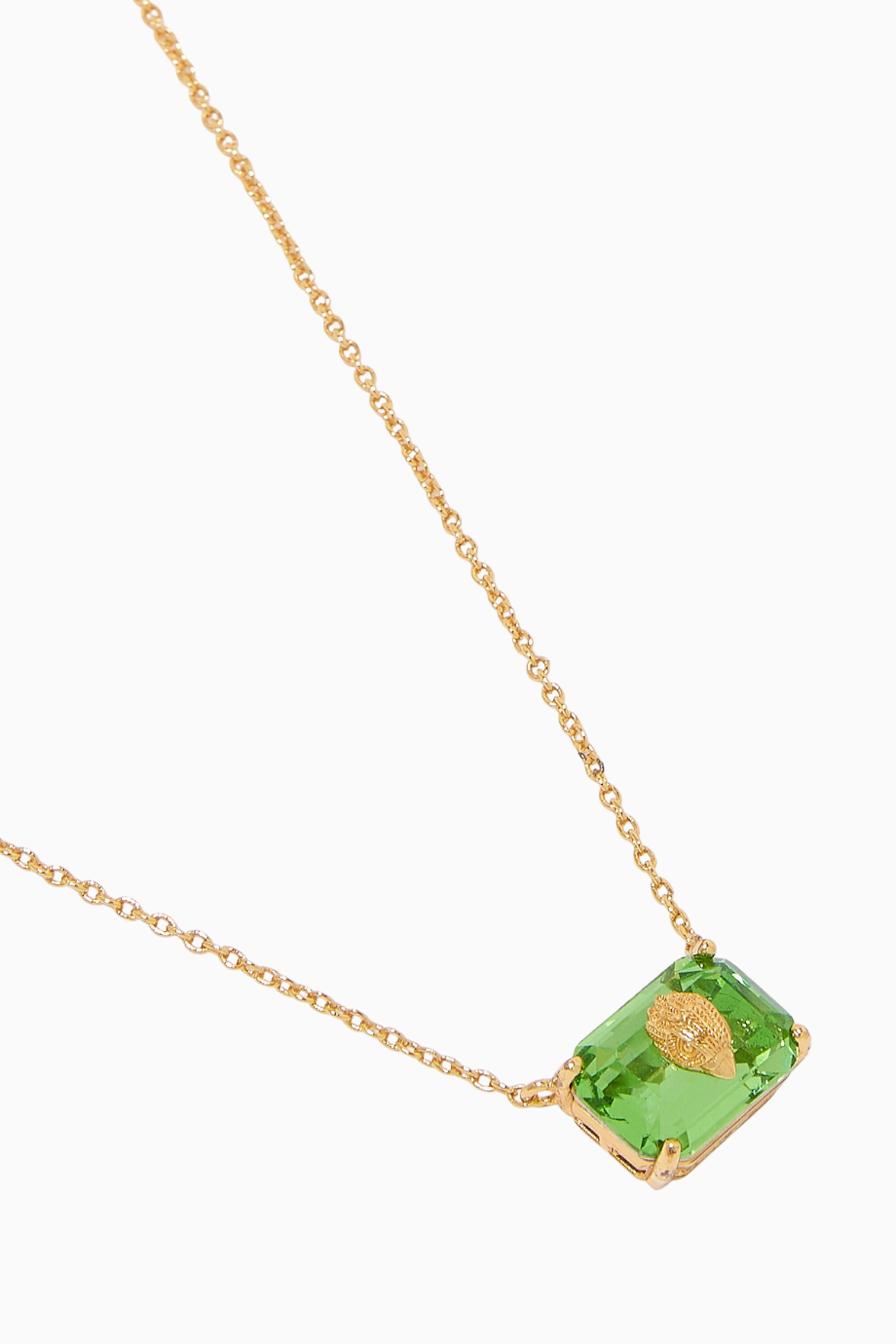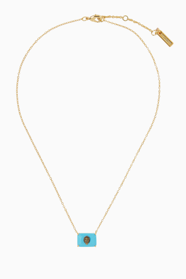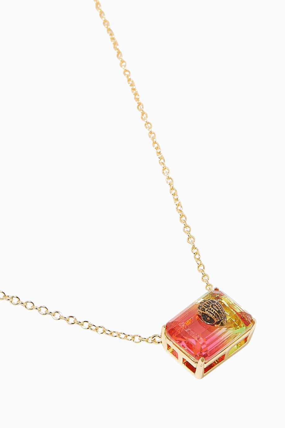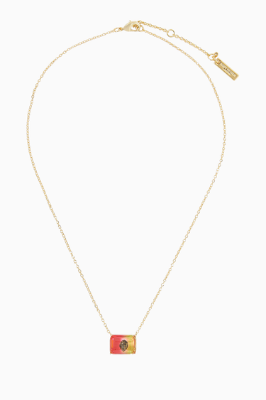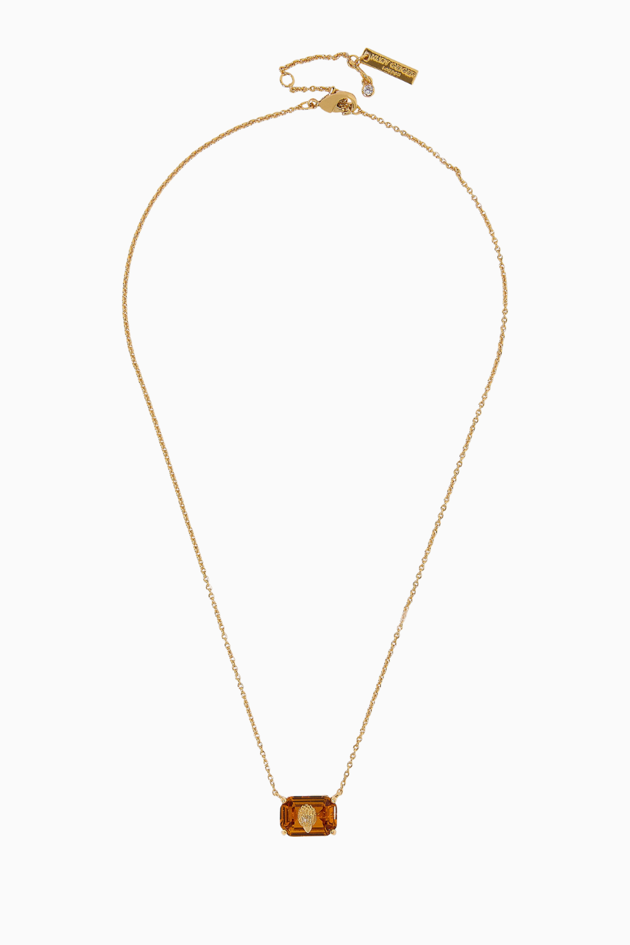 Kurt Geiger Crystal Necklace, turmalin renkli kristal kolye ucu ve ikonik kartal başı detayıyla şıklık ve zarafeti buluşturan kısa bronz zincirli özel bir takıdır.