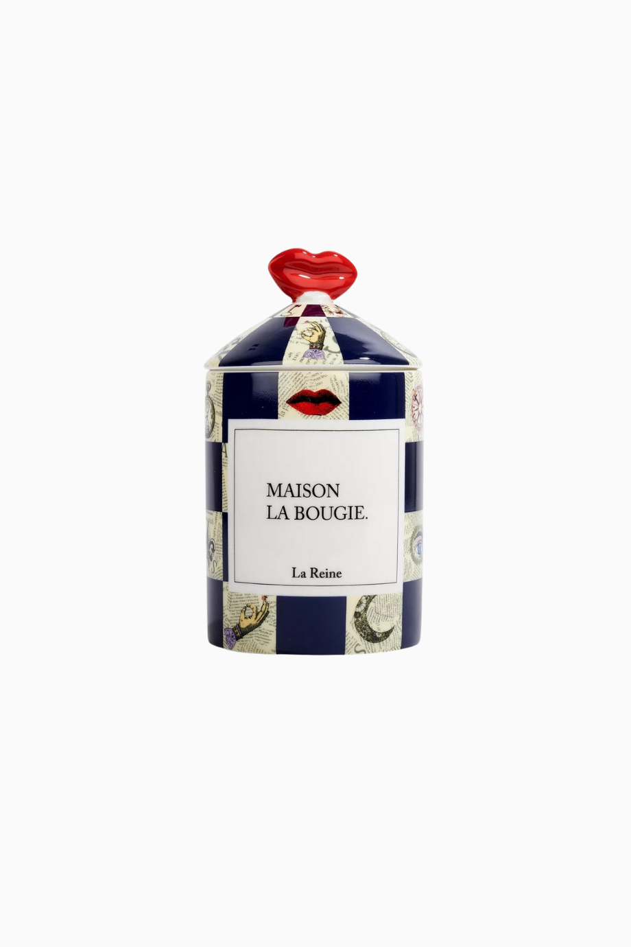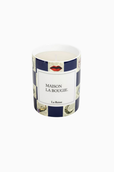 Maison La Bougie La Reine Mum, 350g, anason, tarçın ve tütünün güçlü notalarıyla başlarken, heliotrop, karanfil, benzoin ve tonka fasulyesi ile derinleşir. 100 saate kadar yanma süresiyle lüks ve davetkâr bir atmosfer yaratır.