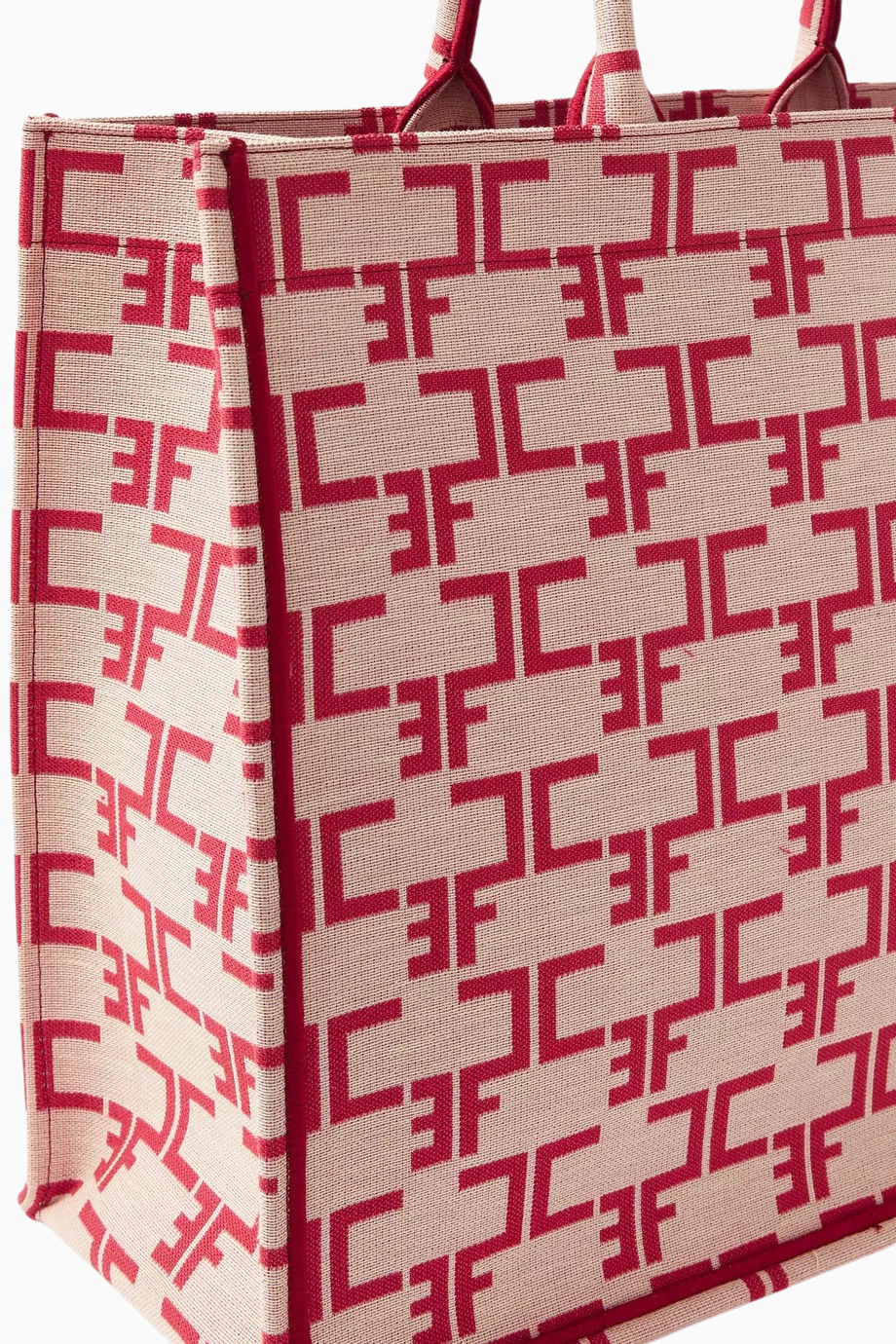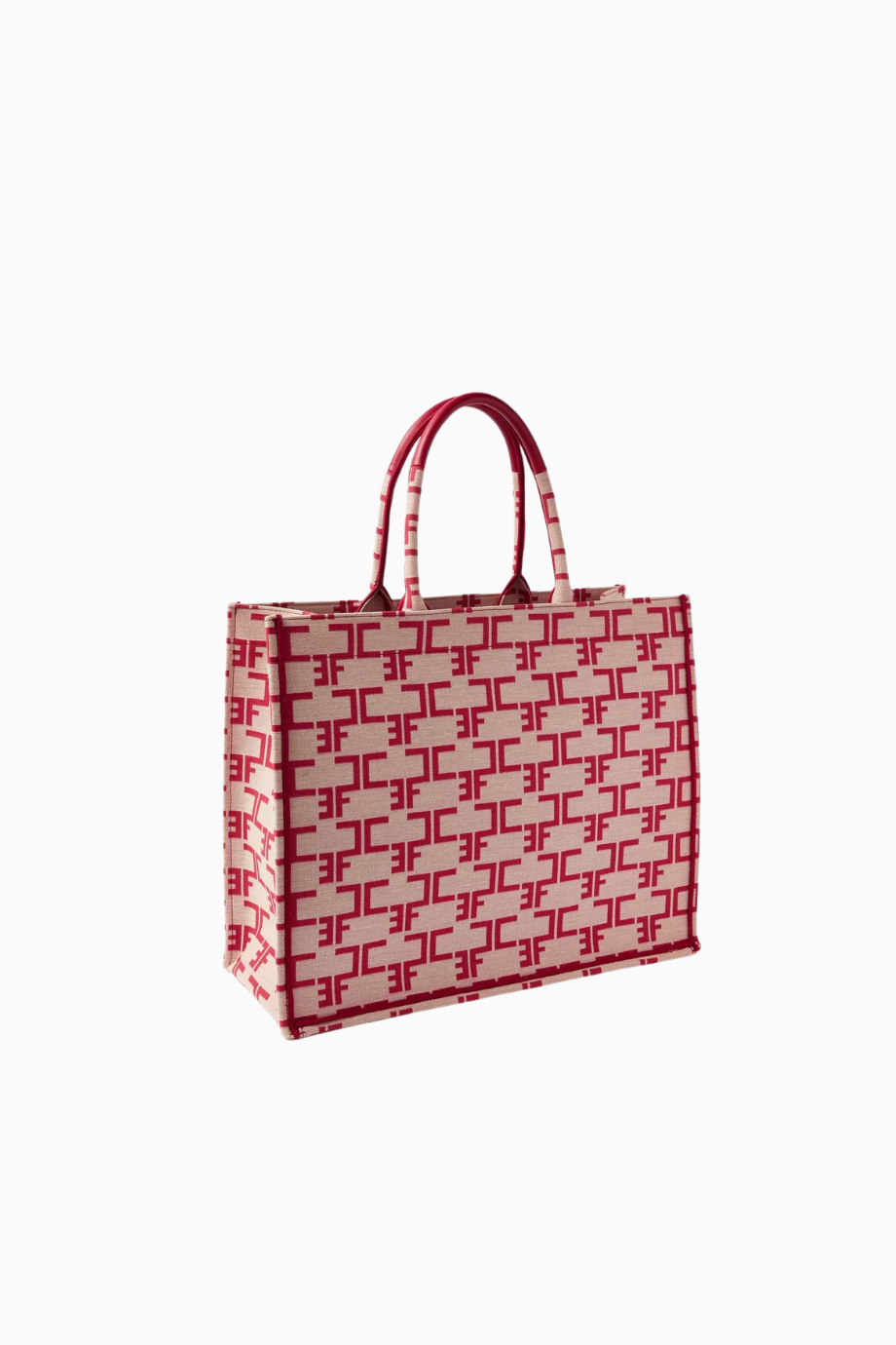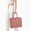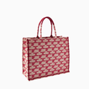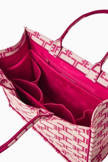 Large Monogram Tote Çanta, Jakarlı Kumaş EF Logolu Lüks Omuz Çantası