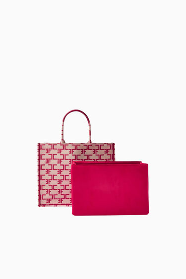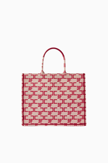 Elisabetta Franchi Large Monogram Tote Bag, jakarlı kumaş üzerine işlenen ikonik EF logolarıyla sofistike bir görünüm sunar. Geniş iç hacmi ve çıkarılabilir düzenleyicisiyle şehir hayatında şıklık ve fonksiyonelliği bir arada arayanlar için ideal bir seçimdir. Hem günlük hem iş stiline kolayca uyum sağlayan bu tasarım, zamansız şıklığın anahtar parçasıdır.