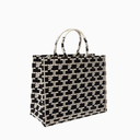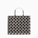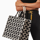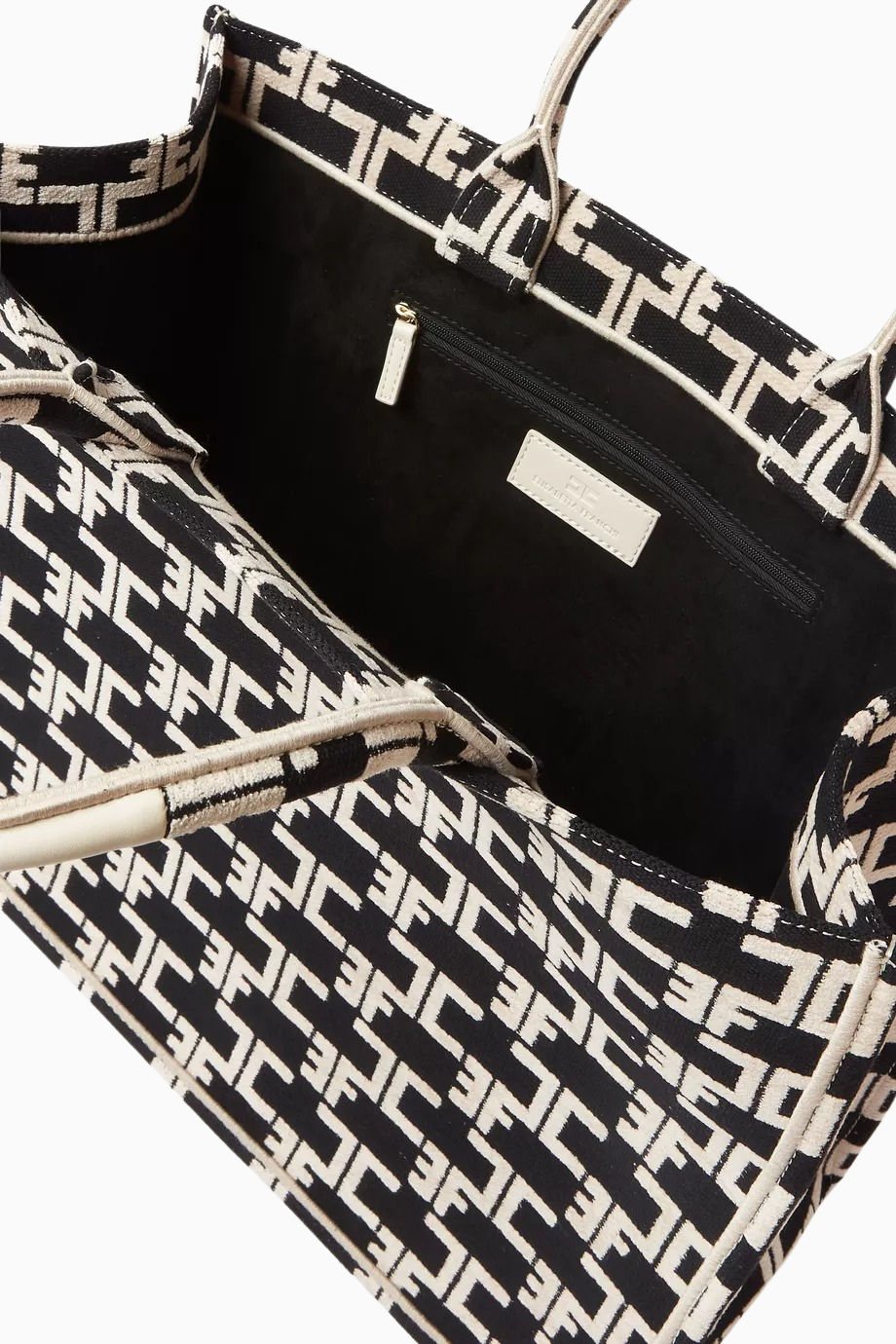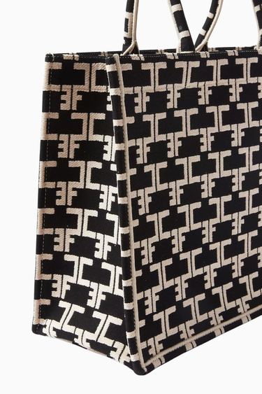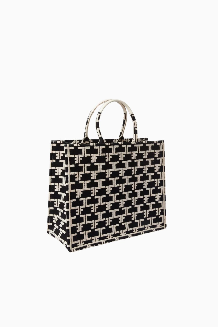 Large Monogram Tote Çanta Siyah, Jakarlı Kumaş EF Logolu Lüks Omuz Çantası