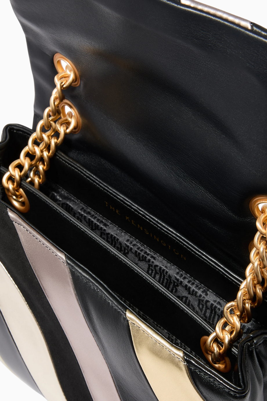 Large Soft Kensington Bag, Metalik Deri ve Altın Detaylarla İddialı Lüks Çanta