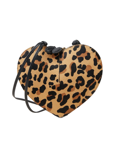 Le Coeur Kalp Omuz Çantası, Animal Print Deri, Ayarlanabilir Askı, İtalya Yapımı