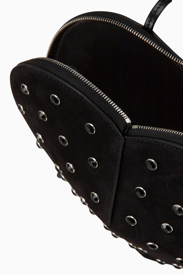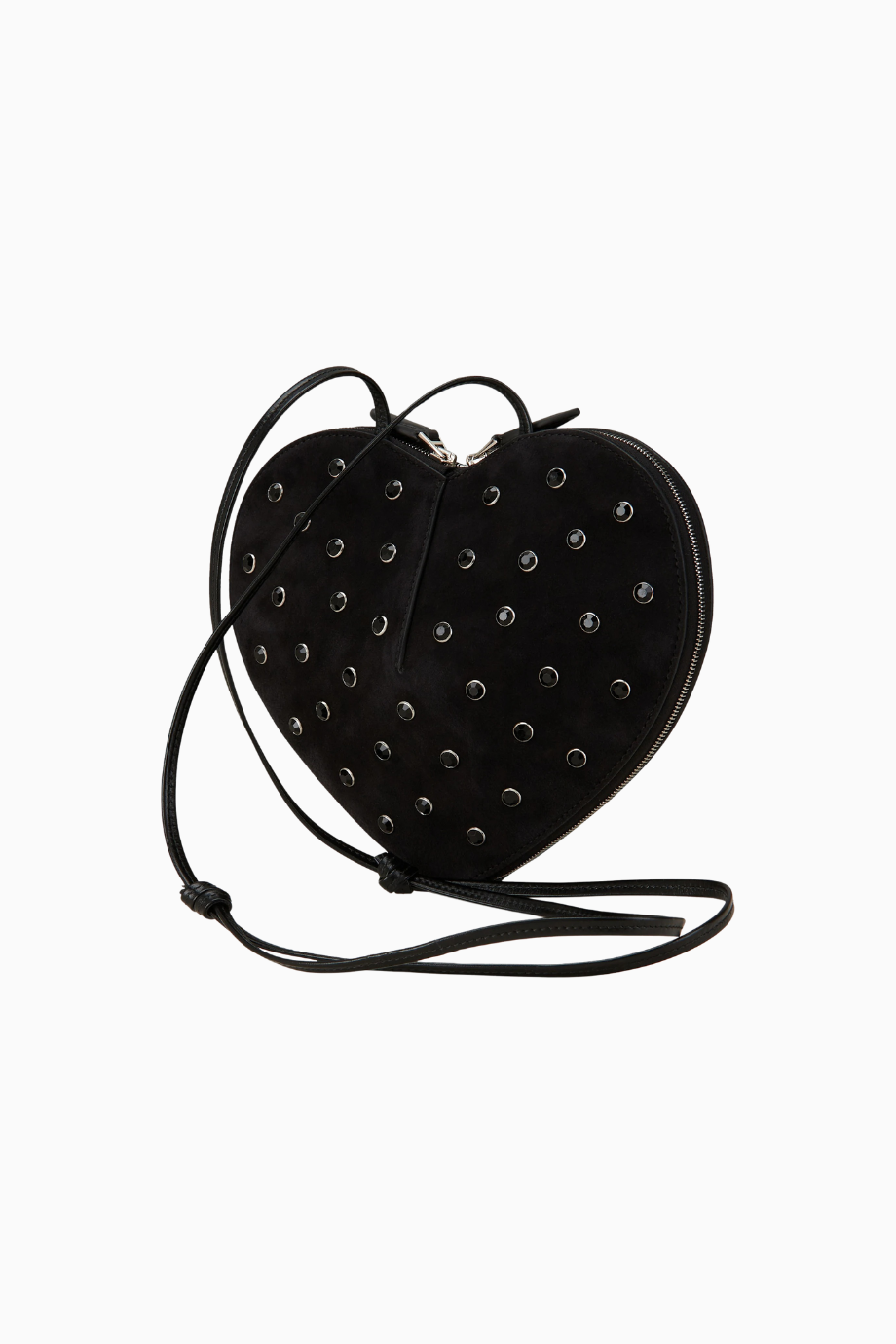 Le Coeur Nubuk Deri Kalp Omuz Çantası, Taş Detaylı, Ayarlanabilir Askılı, İtalya Yapımı