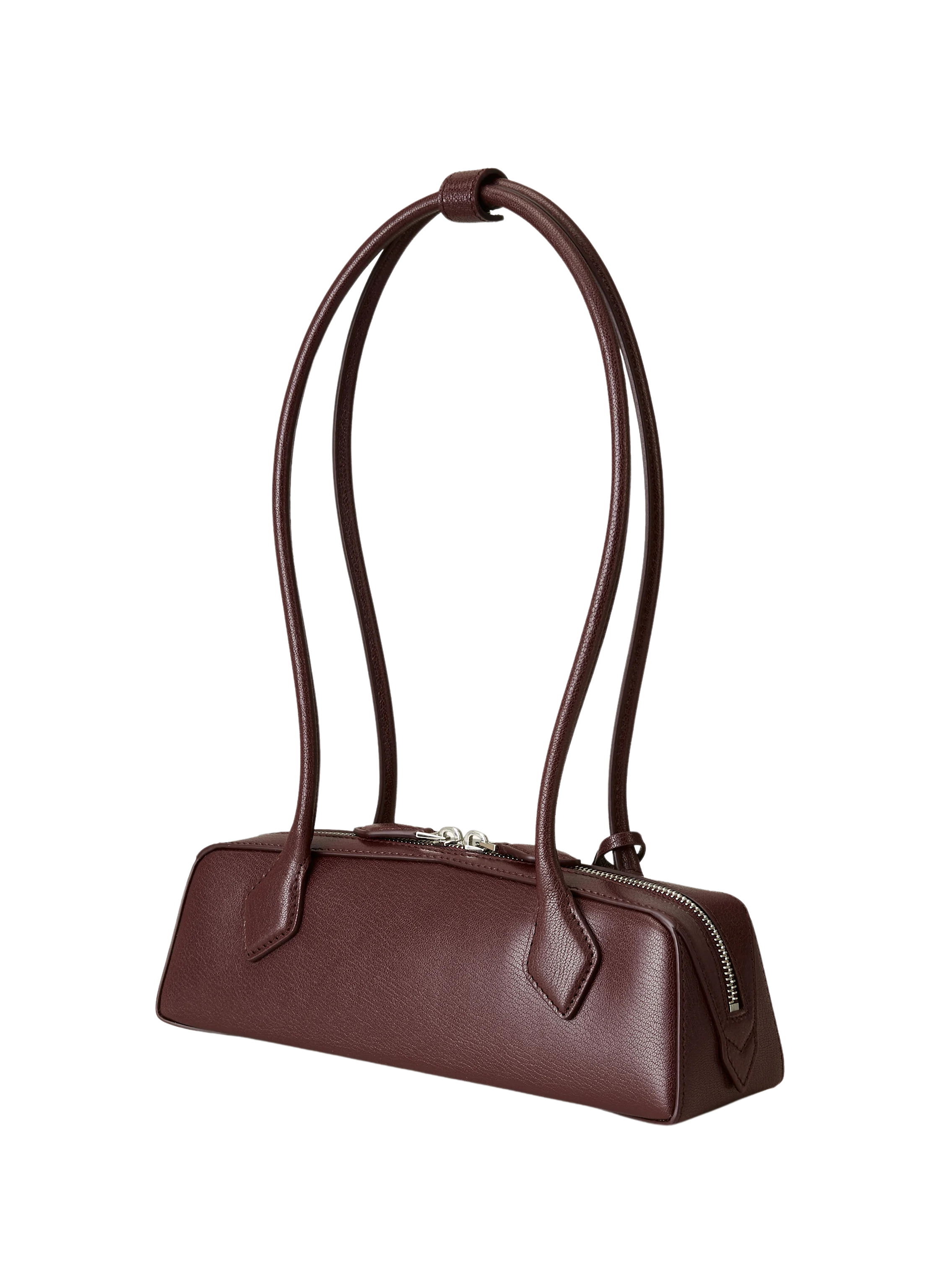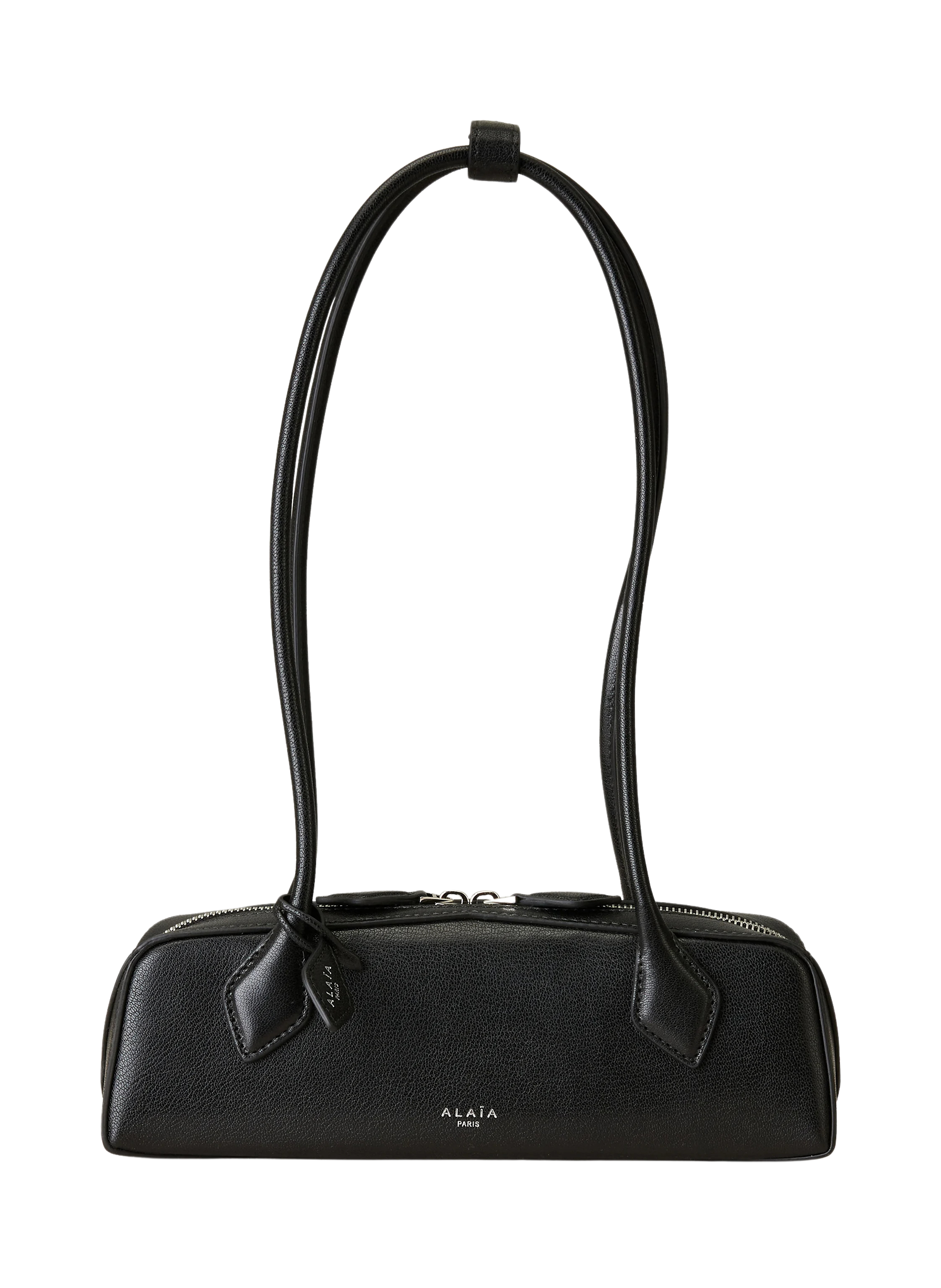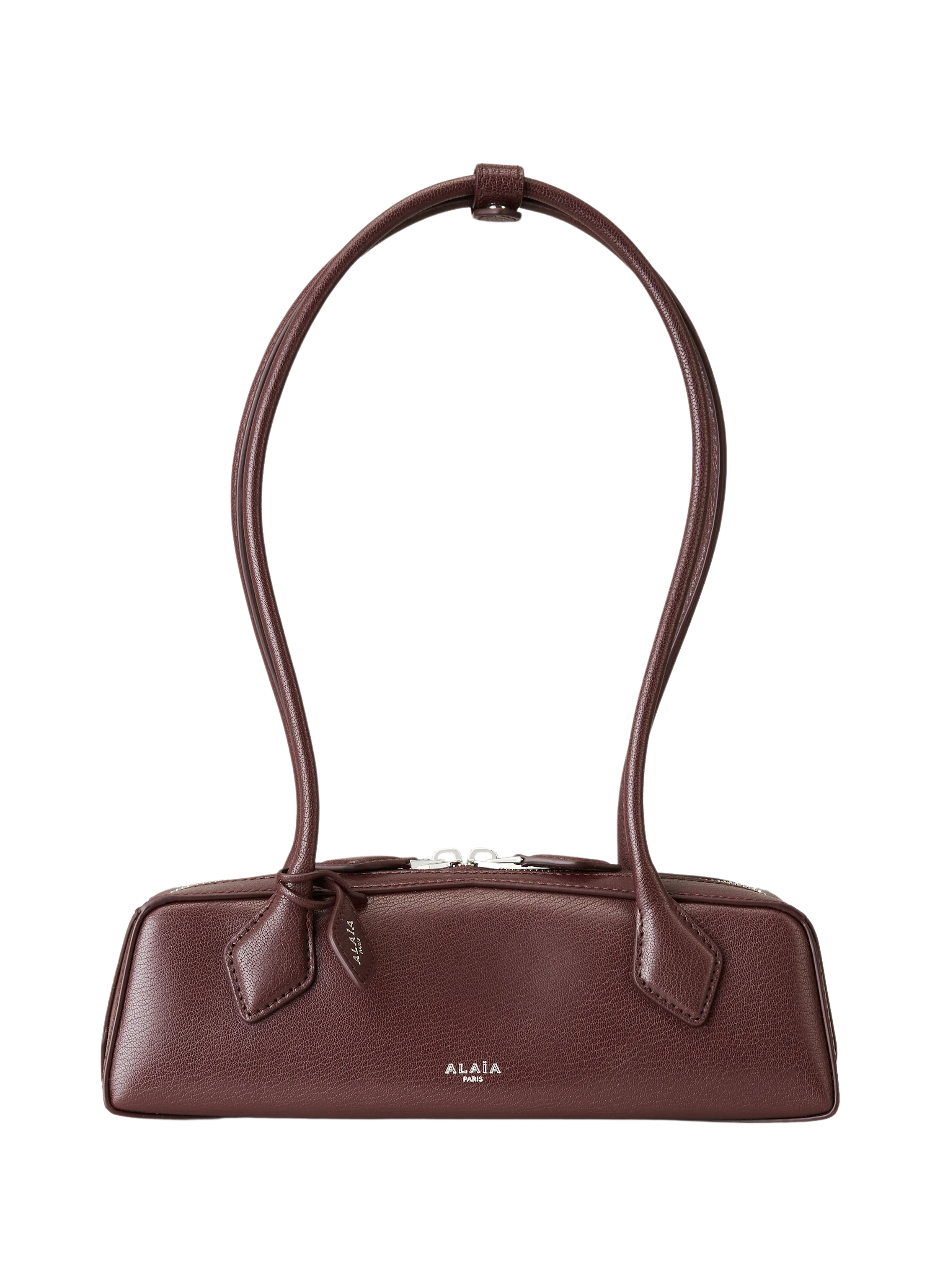 ALAÏA LE TECKEL küçük omuz çantası, taneli nubuk derisi, çift fermuarı ve çıkarılabilir aynasıyla sofistike bir görünüm sunar. Kart bölmesi ve sağlam tabanı ile şıklık ve işlevselliği birleştirir.
