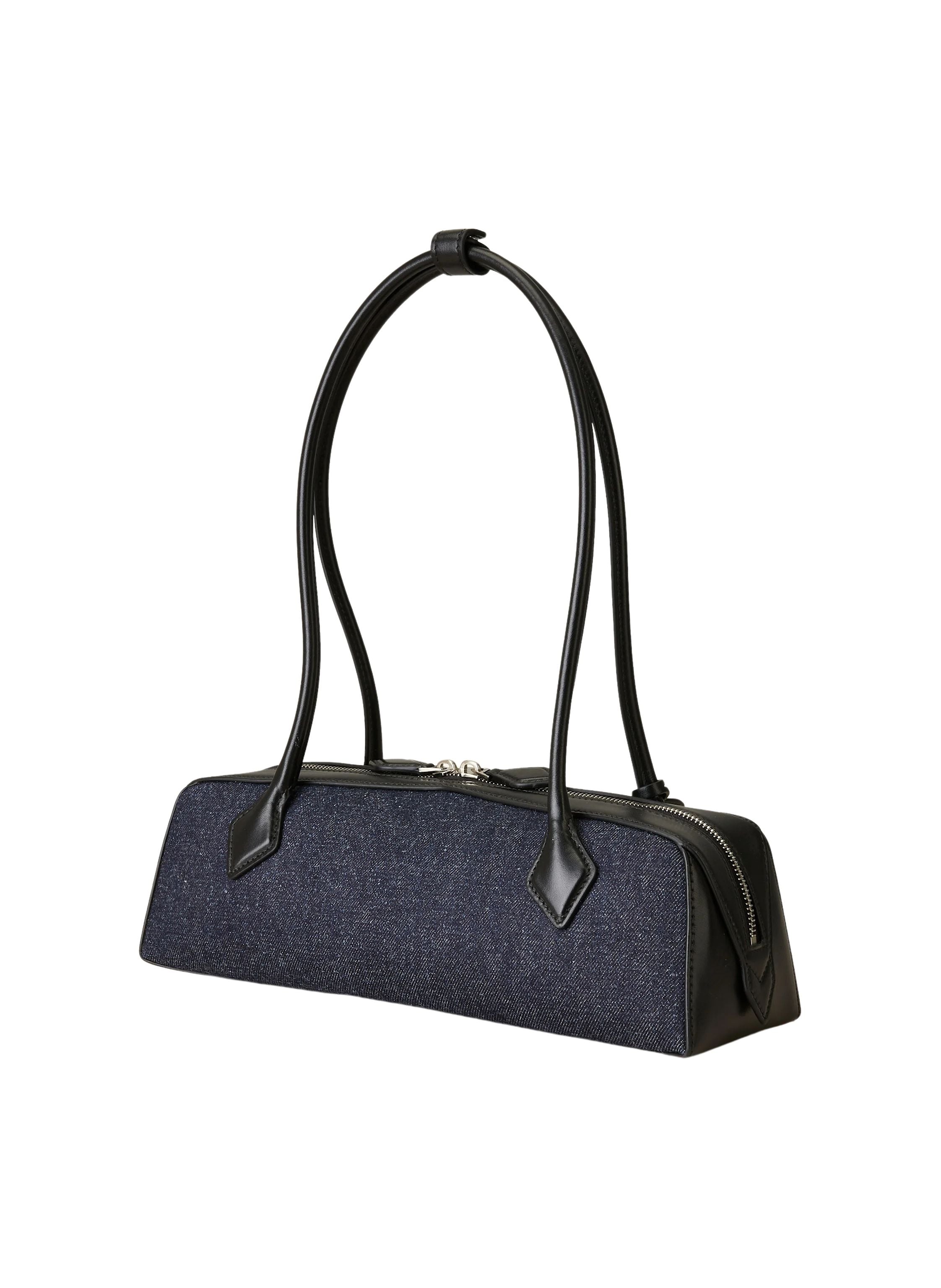 Le Teckel Omuz Çantası, Denim Kumaş ve Deri, Fermuarlı, Kart Gözlü, Şık Tasarım