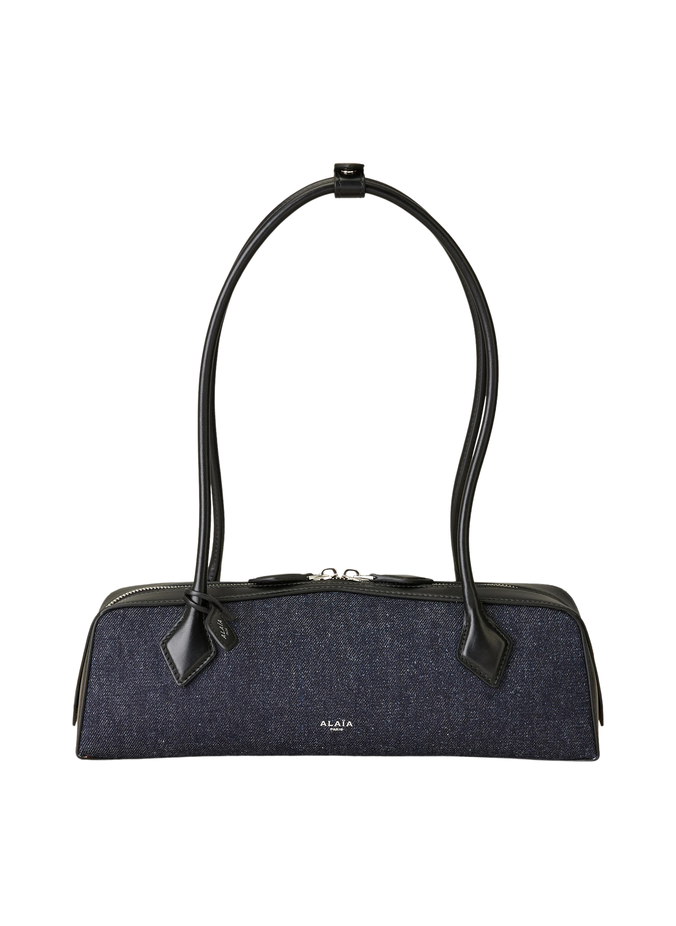 Şık Malzeme Kombinasyonu: Denim kumaş ve deri detaylarla zarif bir görünüm sunar.