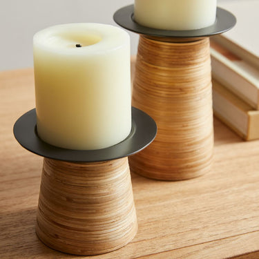 Leon Rattan ve Metal Sütun Tutucular, şıklığı ve zarafeti birleştiren bir tasarıma sahiptir. El kesimi paslanmaz çelik ve doğal rattan malzemelerin uyumuyla, West Elm'in Sütun Mumlarıyla mükemmel uyum sağlar. Hindistan'da üretilen bu tutucular, hem modern hem de doğal bir hava yaratır. Her iki boyutta tek tek satılmaktadır.