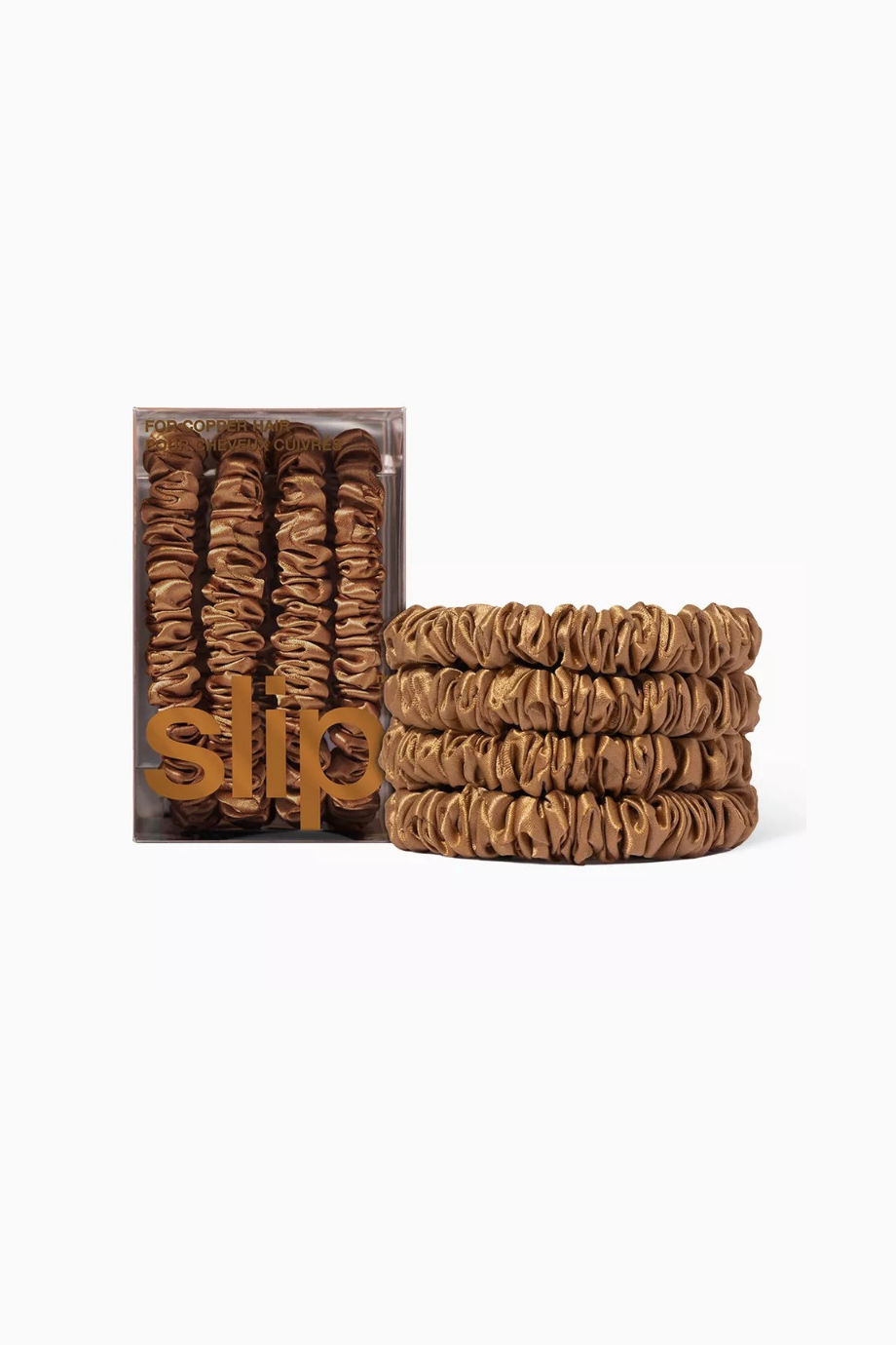 Slip Pure Silk Skinny Scrunchies, saç şekillendirme rutinlerinizi lüks bir dokunuşla yeniden tanımlıyor. Yüksek kalite (6A) uzun lifli dut ipeğinden üretilen ve 22 momme kalınlığa sahip bu saç lastikleri, saçınızı kırmadan veya iz bırakmadan tutar. İster balerin topuzu, ister yüksek at kuyruğu, isterse zarif bir topuz yapın; saçınız gün boyu sağlıklı, pürüzsüz ve şık kalır. Zarafeti ve işlevselliği bir araya getiren bu 4’lü set, saç bakımına önem veren herkes için vazgeçilmez bir lüks aksesuardır.