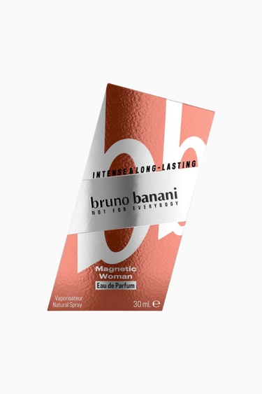 Bruno Banani Magnetic Woman, armut ve siyah frenk üzümü üst notalarıyla ferahlatıcı bir açılış sunar. Yasemin ve kakao kalp notalarıyla tatlı ve çiçeksi, sedir ağacı, kaşmir ve kehribar ise sıcak ve bağımlılık yaratan temel notalar sağlar.