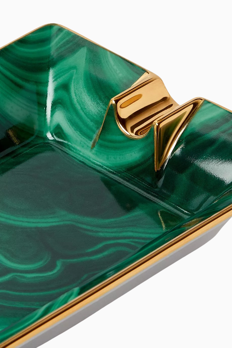 Malachite Porselen Kül Tablası 24K Altın Detaylı