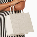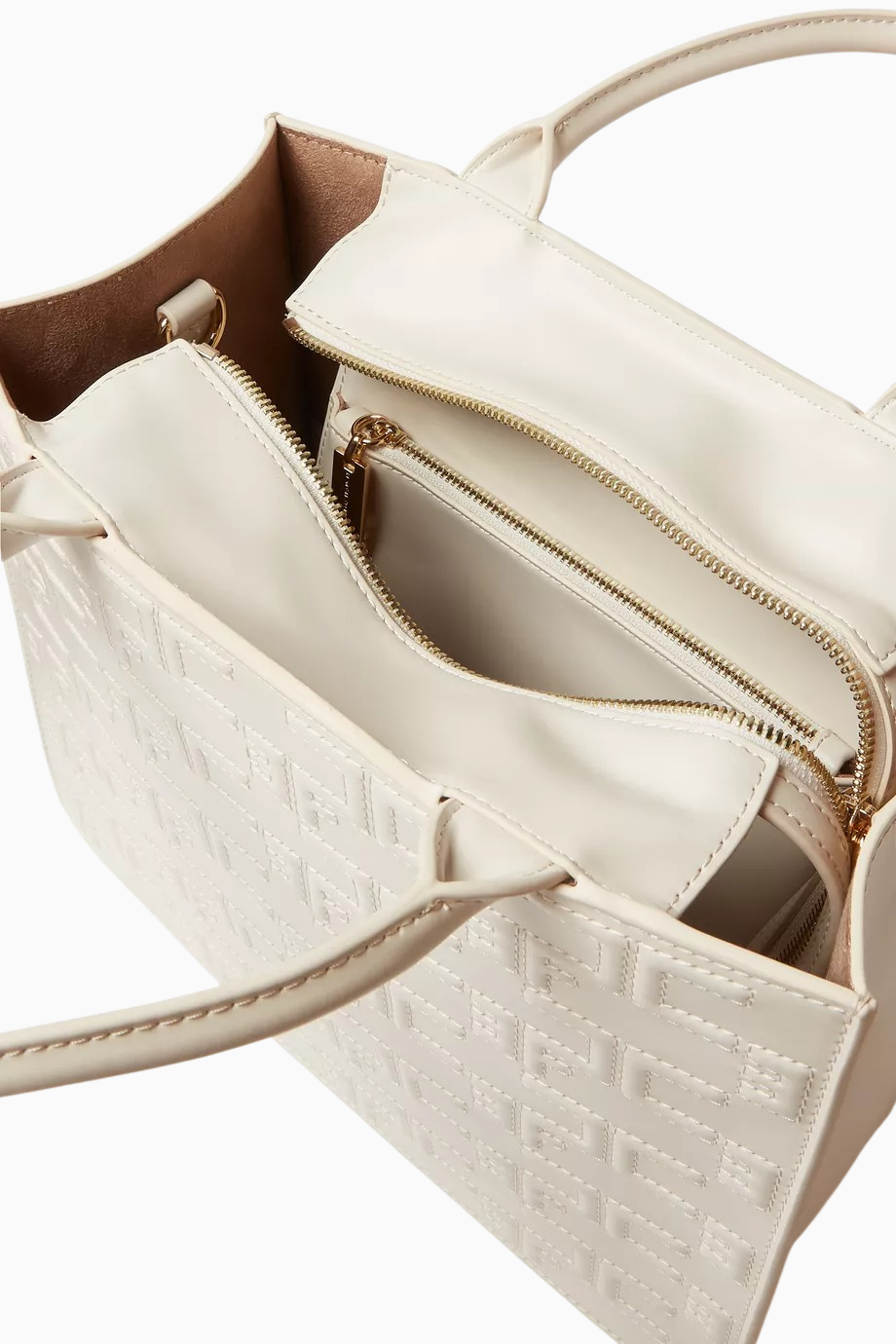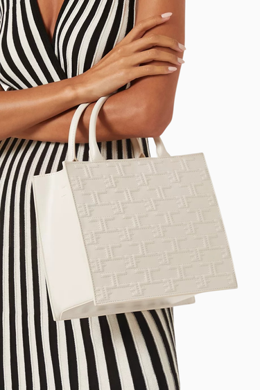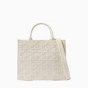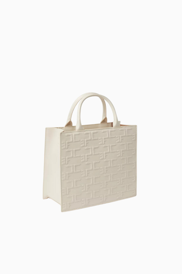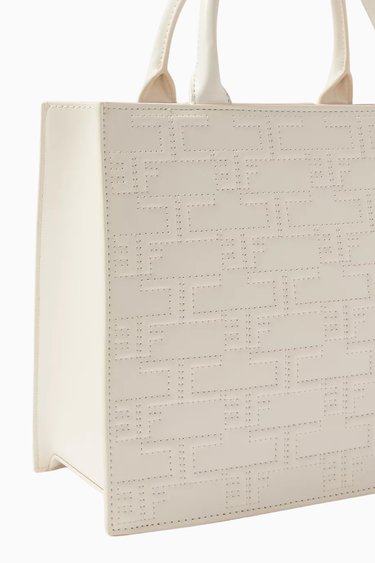 Elisabetta Franchi Medium Bold Monogram Shopper, İtalyan zarafetini modern detaylarla birleştiren sofistike bir tasarımdır. Butter tonlarında yumuşak dokulu faux deri üzerine işlenen tonal EF monogram detaylarıyla öne çıkar. Orta boy genişliği, günlük kullanım için ideal olup yüksek sapları ve çıkarılabilir omuz askısıyla hem şık hem de fonksiyonel bir taşıma deneyimi sunar.