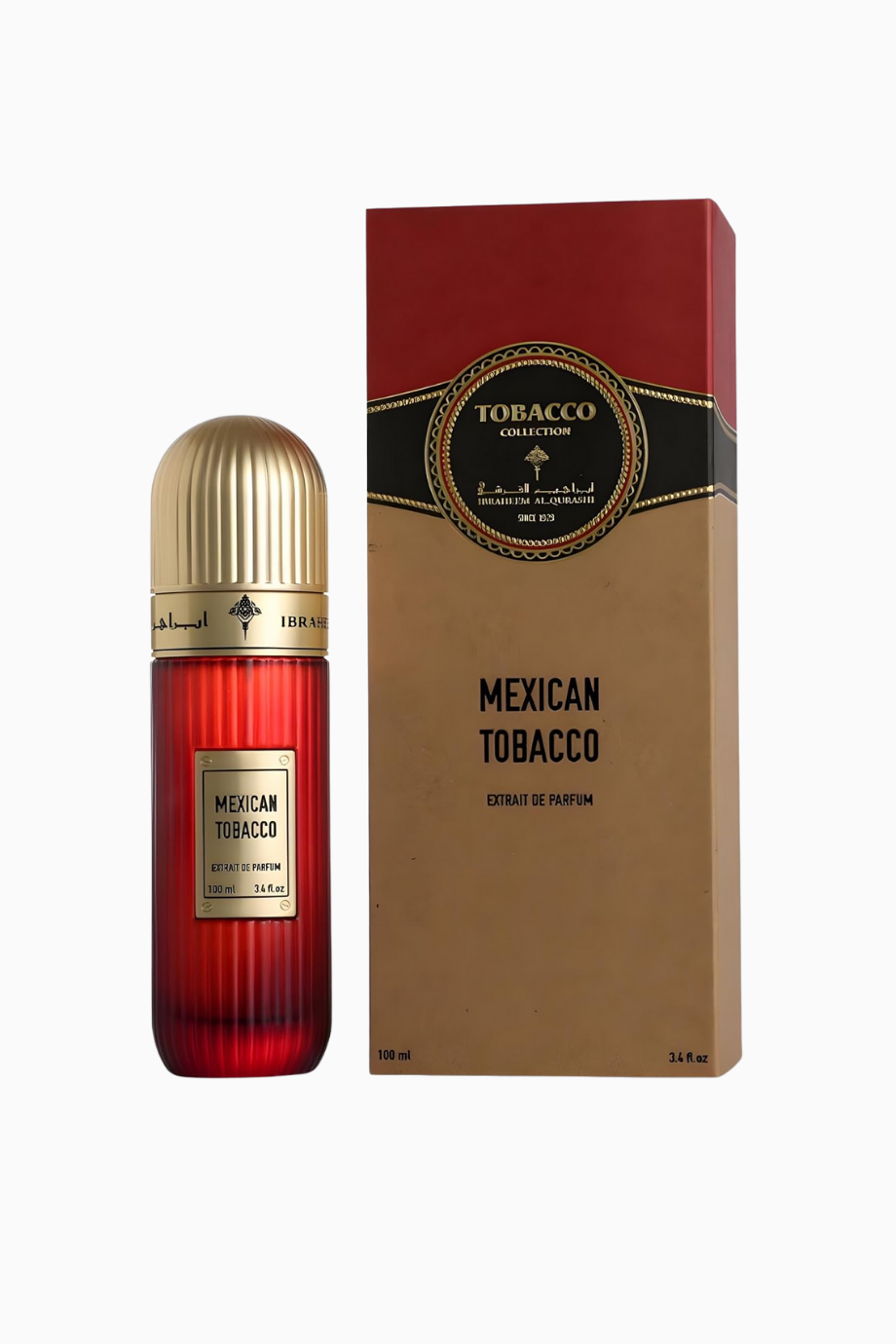 IBRAHEEM AL.QURASHI Mexican Tobacco Extrait de Parfum, Meksika tütünü ve amberin sıcak tonlarını karanlık çikolata, sedir ağacı ve baharatlı tarçın ile harmanlayan sofistike bir unisex koku sunar. Lilak ve gül notalarıyla derinleşen bu parfüm, kalıcılığı ve zengin aromatik yapısıyla hem erkekler hem kadınlar için idealdir.