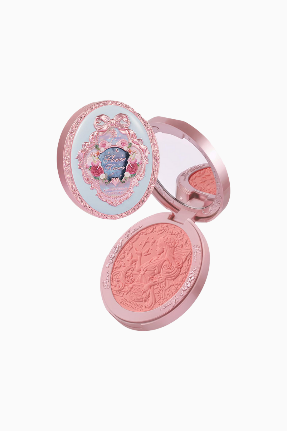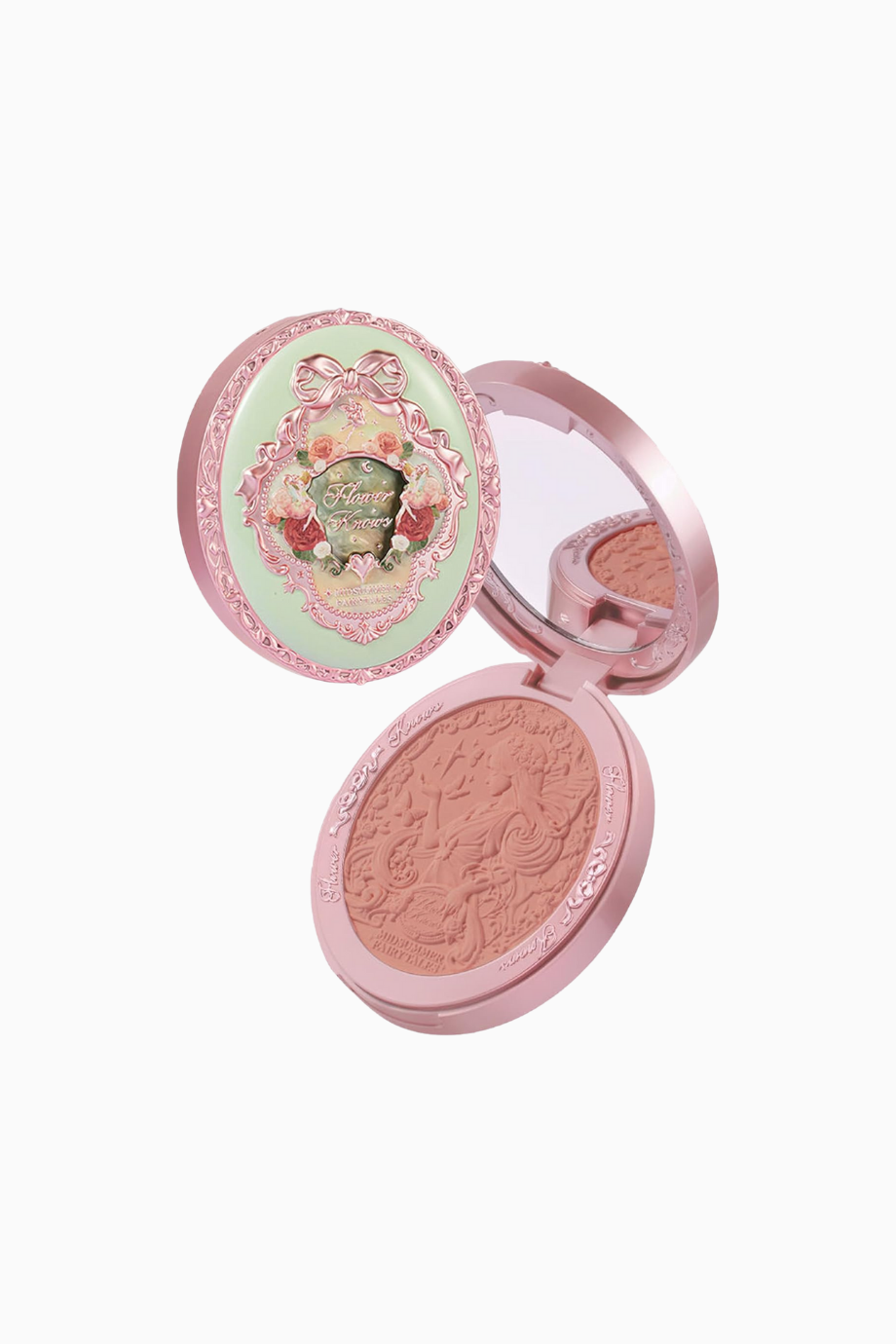 Flower Knows Midsummer Fairytales Velvet Embossed Blush, zarif broş ilhamlı kabartma tasarımı ve ince öğütülmüş yapısıyla ipeksi, doğal ve kalıcı bir renk sunar. Tüm cilt tonlarıyla uyumlu gün boyu tazeliğini koruyan sofistike bir ışıltı sağlar.