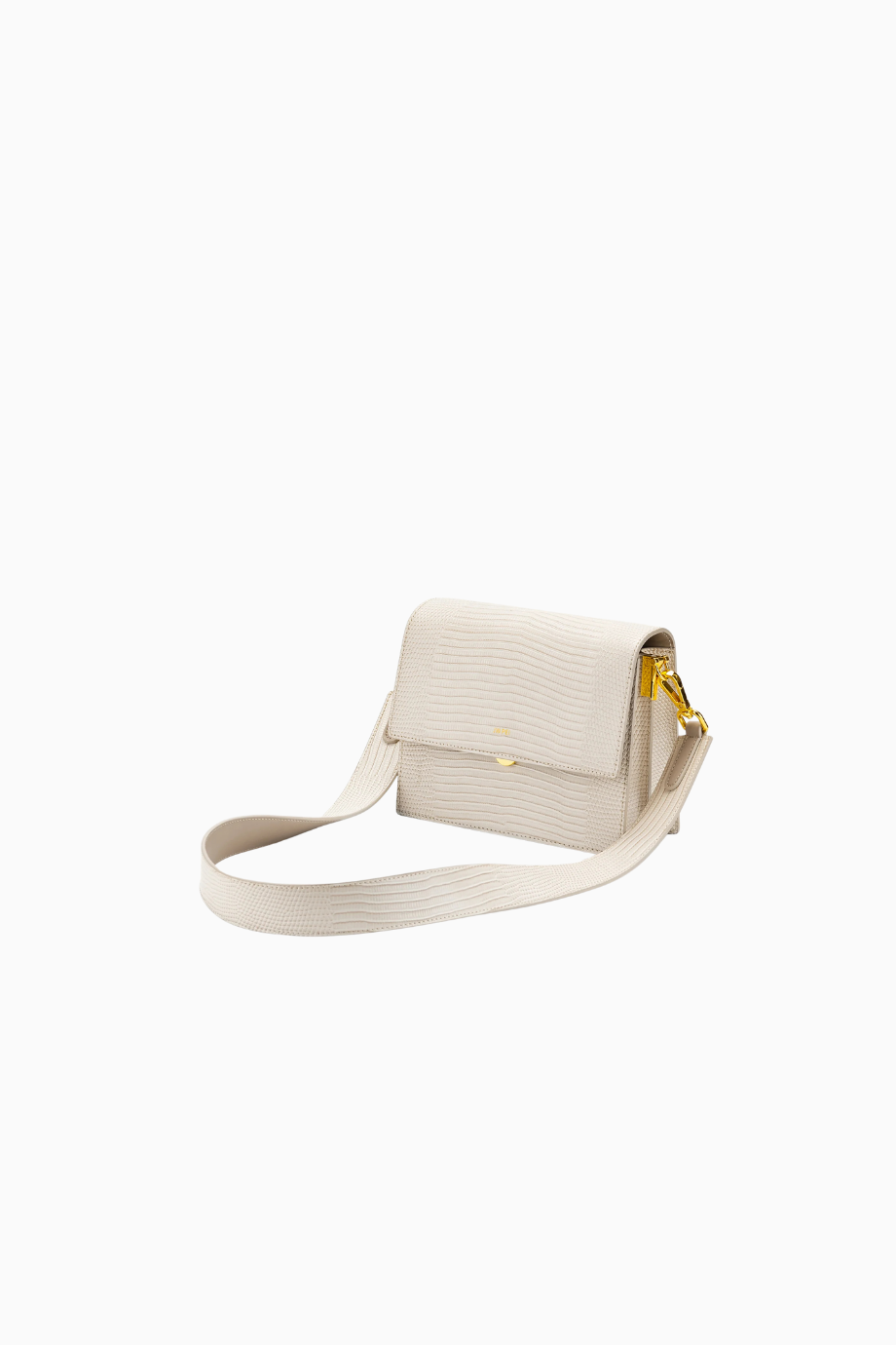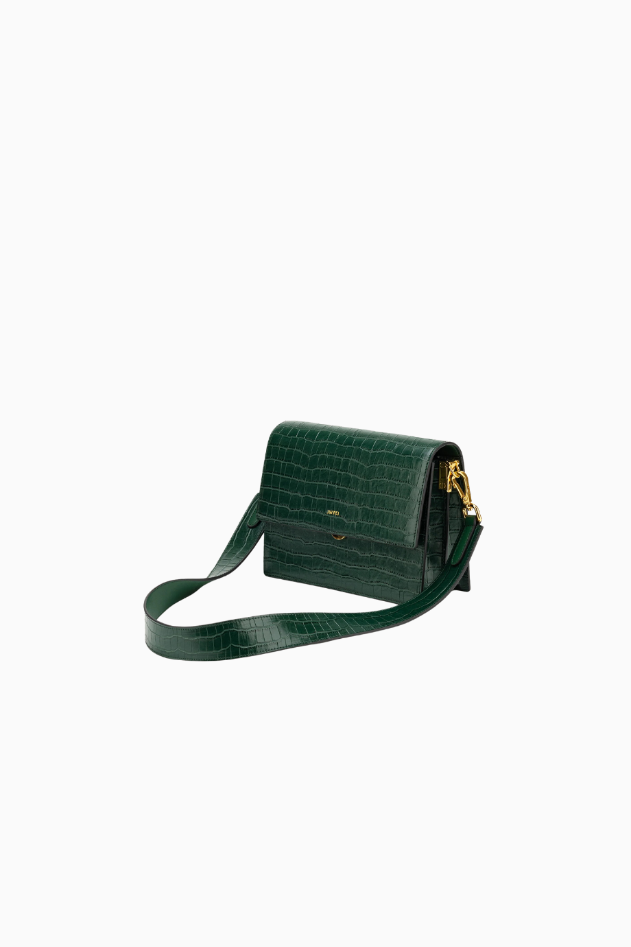 JW PEI Mini Flap Crossbody, sürdürülebilir tasarım anlayışıyla vegan deri ve geri dönüştürülmüş plastikten üretilmiştir. 20 x 15,5 x 8 cm boyutundaki bu zarif çanta, push-lock kilidi ve 2 iç bölmesiyle hem şık hem işlevseldir. Çıkarılabilir kayışıyla omuzda veya elde taşınabilir.