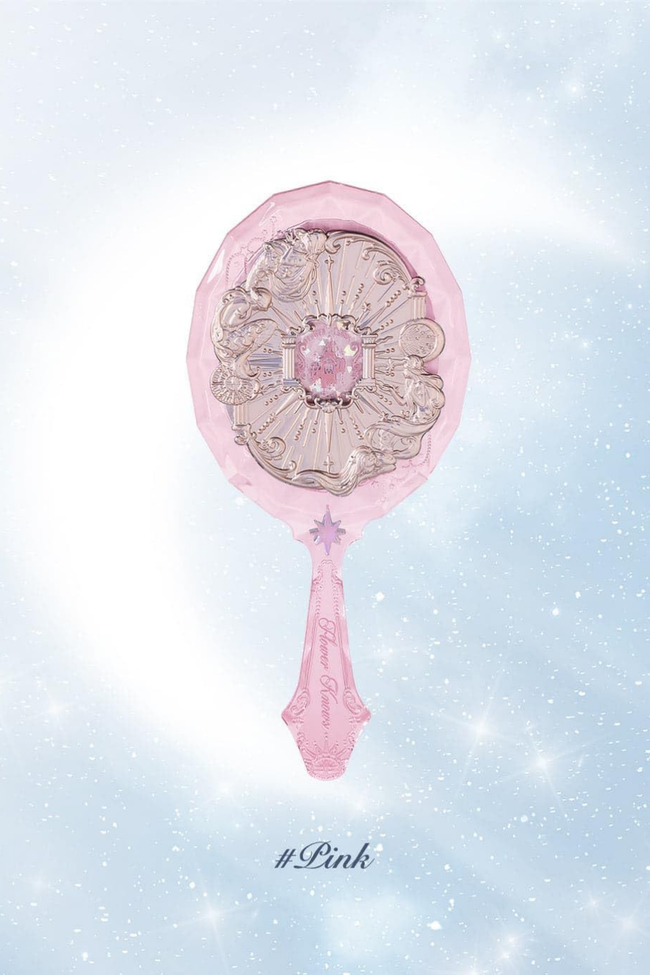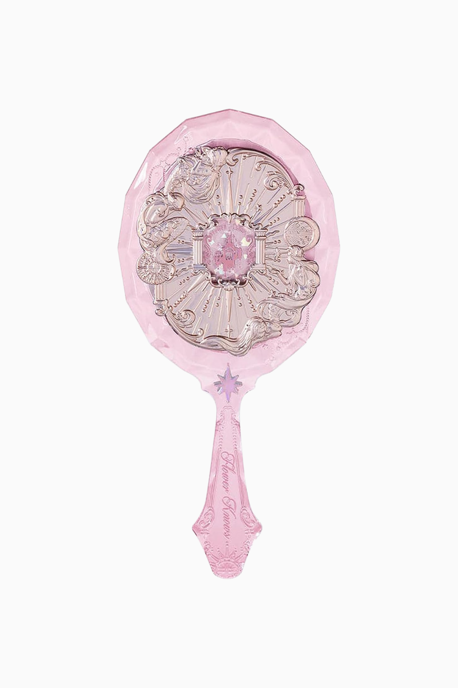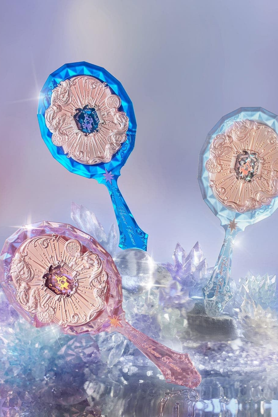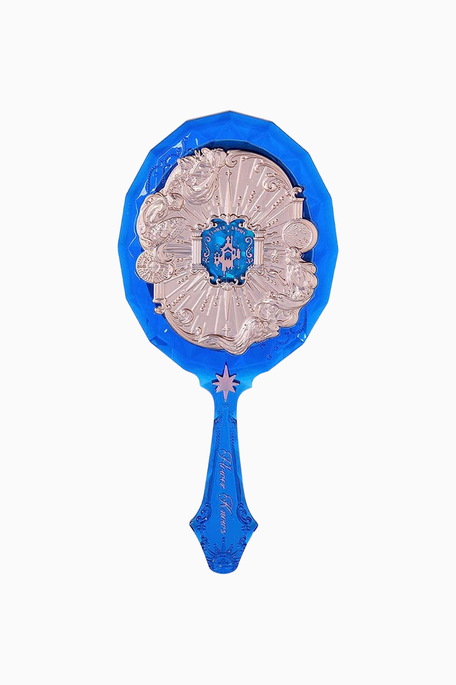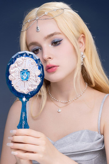 Flower Knows Moonlight Mermaid El Aynası, üç boyutlu kabartma detayları ve mücevher kesimi ilhamlı görünümüyle lüks bir tasarım sunar. Kalın akrilik yapısı, mermaid oymaları ve ışıltılı yüzeyiyle koleksiyon değeri taşıyan zarif bir aksesuar.