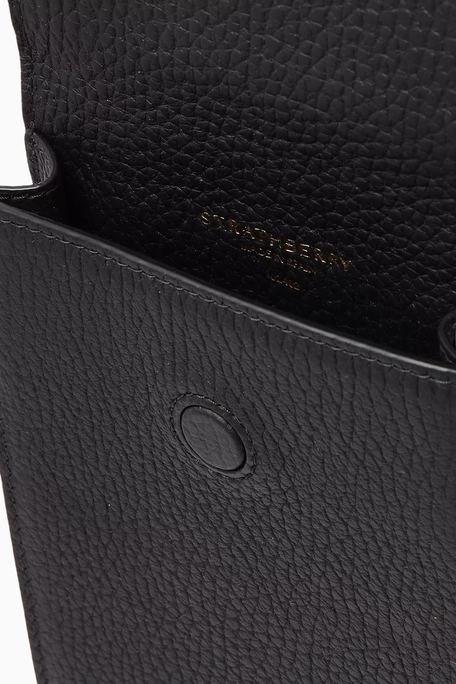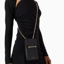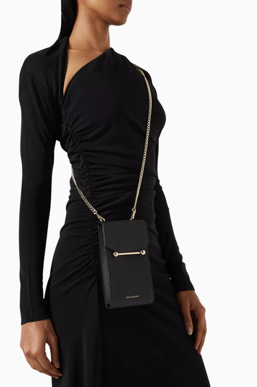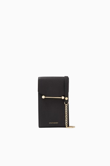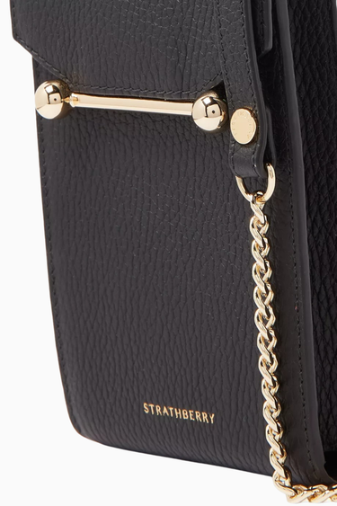 Strathberry Mosaic Phone Pouch, siyah grained deriden İspanya’da el işçiliğiyle üretilmiştir. Manyetik kapaması, arka fermuarlı kart bölmesi ve çıkarılabilir zincir askısıyla hem pratik hem sofistike bir kullanım sunar. Günlük şıklık ve modern hareket özgürlüğü için ideal hafif ve kompakt bir tasarımdır.