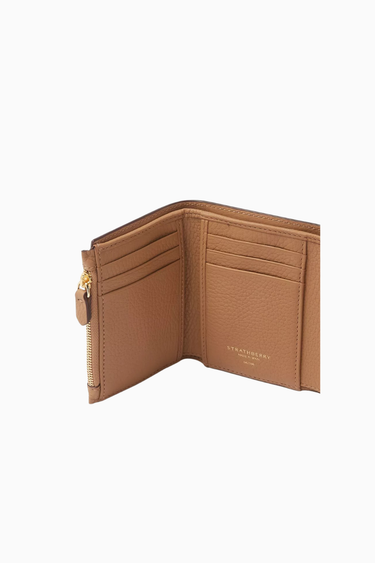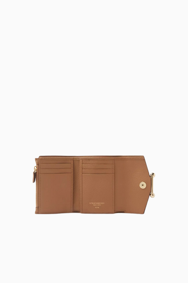 Strathberry Mosaic Trifold cüzdan, İspanya’da el yapımı grained deri kullanılarak tasarlanmıştır. Altı kart bölmesi, fermuarlı bozuk para cebi ve slip cepler ile kompakt ve şık bir kullanım sunar.