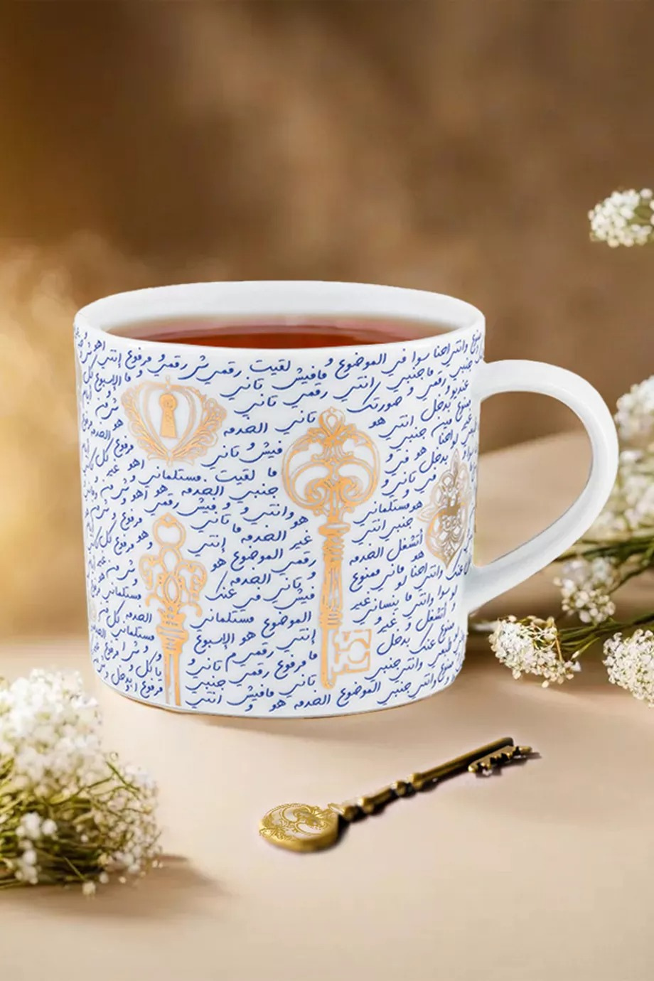 Silsal Nagham Mug, porselen yapısı ve 22 ayar altın anahtar motifleri ile öne çıkar. Üzerinde sevilen bir Arap aşk şarkısının sözleri bulunan bu zarif mug, kahve ritüelinizi görsel ve duygusal bir deneyime dönüştürür. Özel Silsal hediye kutusu ile şık bir hediye seçeneğidir.