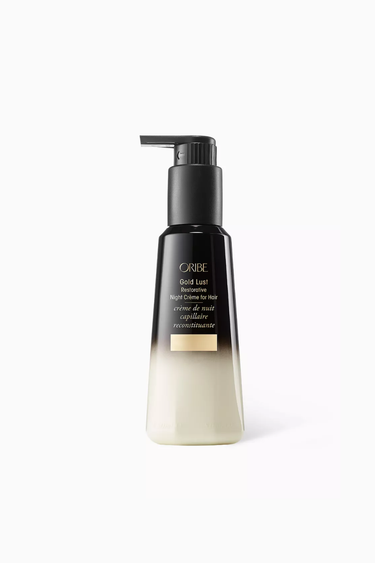 Oribe Gold Lust Onarıcı Gece Kremi, uyurken saçları derinlemesine nemlendirir ve besler. Biyomimetik onarım kompleksi ve bitkisel özlerle güçlendirilmiş formülü kırık uçları azaltır, saçları pürüzsüz ve sağlıklı hale getirir.
