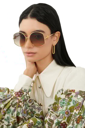 Gözlerinizi güneşten koruyun, bu '70'ler esintili Loewe güneş gözlükleri ile. Yansıtıcı lensleri ile şık bir işlevsellik sunan bu büyük çerçeveli gözlük, stil sahibi olmanın yanı sıra pratik bir kullanım da sağlıyor ve tüm gözlük ihtiyaçlarınızı karşılıyor. Altın rengi parıltıya sahip bu gözlükler, her iki şakakta imza niteliğindeki Anagram donanımı ile tamamlanmıştır.