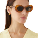 Loewe'nin ikonik büyük çerçevelerini sergileyen bu güneş gözlüğü, kalın mottolu kenarlarıyla tanımlanır. Günlük kullanım için yeterince çok yönlü olan bu gözlük, kıyafetlerinize anında şıklık katacaktır. %100 UVA/UVB koruması ile gözlerinizi güneşin zararlı ışınlarından korur.