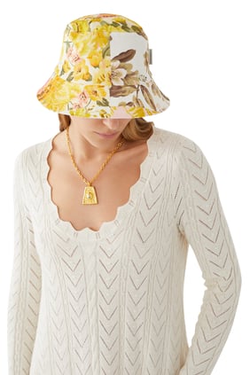 Desenli Kanvas Bucket Şapka ile lüks konforun ve zamansız stilin tadını çıkarın. Zimmermann tarafından titizlikle hazırlanmış bu şapka, modayı işlevsellikle birleştiren gerçek bir ifade parçasıdır. Dayanıklı kanvas kumaş üzerinde cesur ve dikkat çekici bir baskıya sahip olan bu şapka, kıyafetinize şık bir dokunuş katmanın yanı sıra, gözlerinizi güneşten koruma işlevini de şık bir şekilde yerine getirir. Görünümlerinizi tamamlayın ve stilinizi yükseltin, şimdi kadın şapkaları aksesuarları bölümünde mevcut.