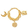Günlük görünümünüze biraz hayal gücü katın! Rabanne tarafından tasarlanan Güneş Tarih Bilekliği, güneş şekilli charm'lar ve eşsiz fantastik madalyaların muhteşem bir kombinasyonunu sunuyor. Her bir charm ve madalya, titizlikle tasarlanmış ve mükemmel bir şekilde işlenmiştir, bu da bu parçayı modaya uygun her kadının sahip olması gereken bir ürün haline getiriyor. Ayarlanabilir zincir, tüm bilek boyutları için rahat bir uyum sağlar ve kullanılan yüksek kaliteli malzemeler, dayanıklılık ve uzun ömürlü kullanım garantisi sunar. Bu bilekliği tek başına şık bir parça olarak kullanabilir veya diğer bileziklerle bir araya getirerek trend bir katmanlı görünüm oluşturabilirsiniz. İster ofise gidin, ister arkadaşlarınızla bir akşam dışarı çıkın, Fantastik Madalyalar ile Güneş Tarih Bilekliği, kıyafetinize şıklık katacak.