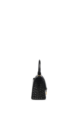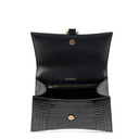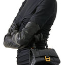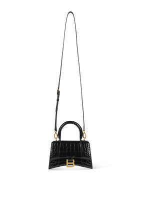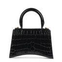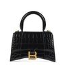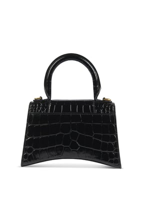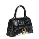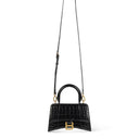 Bu Balenciaga Hourglass XS El Çantası, deri malzemeden üretilmiştir. Tek bir sapı, zımbalı mıknatıs kapama mekanizması, B logosu ile yaşlı altın donanım ve bir arka cebi bulunmaktadır.