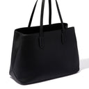 Önemli eşyalarınız için ortada bir fermuarlı cep ve laptop gibi daha büyük parçalar için her iki tarafta iki bölme bulunuyor. Sağlam üst kulpları ve tasarımcı dokunuşu için tonla kaplanmış metal detaylarıyla bu çanta, sahip olmadan yapamayacağınız bir aksesuar.