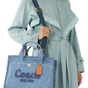 Coach markasının Denim Cargo Tote Çantası, hareket halinde olan kadınlar için stil ve işlevselliği bir araya getiriyor. Dayanıklı denim malzemeden üretilmiş olan bu tote çanta, günlük kullanımların zorluklarına dayanacak şekilde tasarlanmışken, şık bir görünüm de sunuyor. Geniş iç hacmi yumuşak bir kumaşla kaplanmış ve birden fazla ceple donatılmıştır, böylece ihtiyaç duyduğunuz eşyalar düzenli ve erişilebilir durumda kalır. Telefonunuz, anahtarlarınız veya cüzdanınız için her şey elinizin altında bulunur. Dış yüzeyi benzersiz bir denim deseni ile süslenmiş olup, görünümünüze şık bir sofistike dokunuş katıyor. Pratik fermuarlı kapanışı sayesinde eşyalarınız güvende kalırken, gününüzü güvenle geçirebilirsiniz.