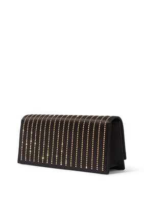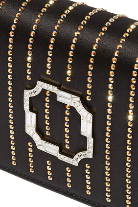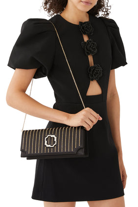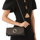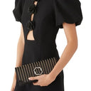 Malone Souliers Vivien Saten Clutch Çanta, şık siyah saten dokusu ve ışıltılı altın kristal şeritleriyle göz alıcı bir zarafet sunar. İnce silueti, şık bir armalı toka ile yükseltilmiştir ve sofistike bir hava katmaktadır. Manyetik kapak öne sahip olan bu çanta, elden taşıma veya zarif zincir askı ile kullanma seçeneği sunar. Özel günler için mükemmel olan bu clutch, her kıyafete cesur bir zarafet katar.