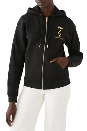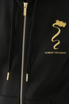 Armani Exchange, Çin Yeni Yılı koleksiyonundan bu sweatshirt ile Ejderha Yılı'nı kutluyor. Yumuşak jersey kumaştan üretilmiştir ve uzun kollu, ribanalı manşetlere ve altın tonlu donanımlı bir fermuara sahiptir. Göğüste yer alan nakışlı ejderha, sağlık ve enerjiyi temsil etmektedir.