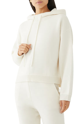 Lüks Kaşmir Triko Kapüşonlu Sweatshirt - İvory