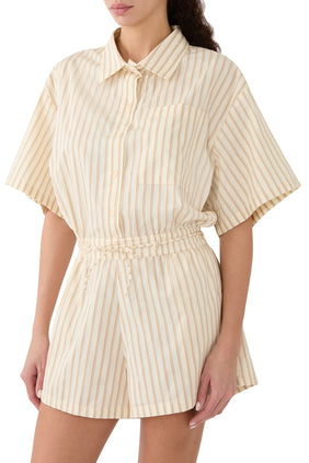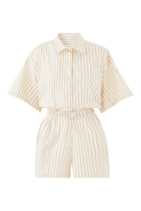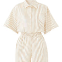 Yaz gardırobunuzu Faithfull the Brand tarafından tasarlanan Faia Tulum Elbise ile zenginleştirin. Yumuşak, hafif kumaştan üretilen bu tulum, zamansız bir renk ve çizgili deseniyle zahmetsiz bir şıklık ve zarafet sunuyor. Rahat kesimi ile tüm vücut tiplerine uygun, şık bir görünüm sağlarken, ayarlanabilir bel bağlaması sayesinde kişiselleştirilebilir, feminen bir silüet sunar.