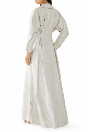 Şıklığın Simgesi Metalik Keten Karışımlı Maksi Elbise