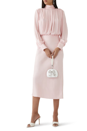 Tanışın, Alice + Olivia Gertrude Bluz: zarafet ve çekiciliği bir araya getiren ipeksi bir şaheser. Lüks drapesi zahmetsizce akar, bluzon kolları ve shirred bedeni romantik bir dokunuş getirir. Kendinden bağlamalı yüksek yaka ve şık manşetler, zamansız bir feminen görünüm yaratır. Cesur küpeler ve şık kotlarla kombinleyerek "zahmetsizce harika" bir görünüm elde edebilirsiniz.