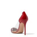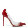 Kırmızı Deri ve Plexi Topuklu Ayakkabı